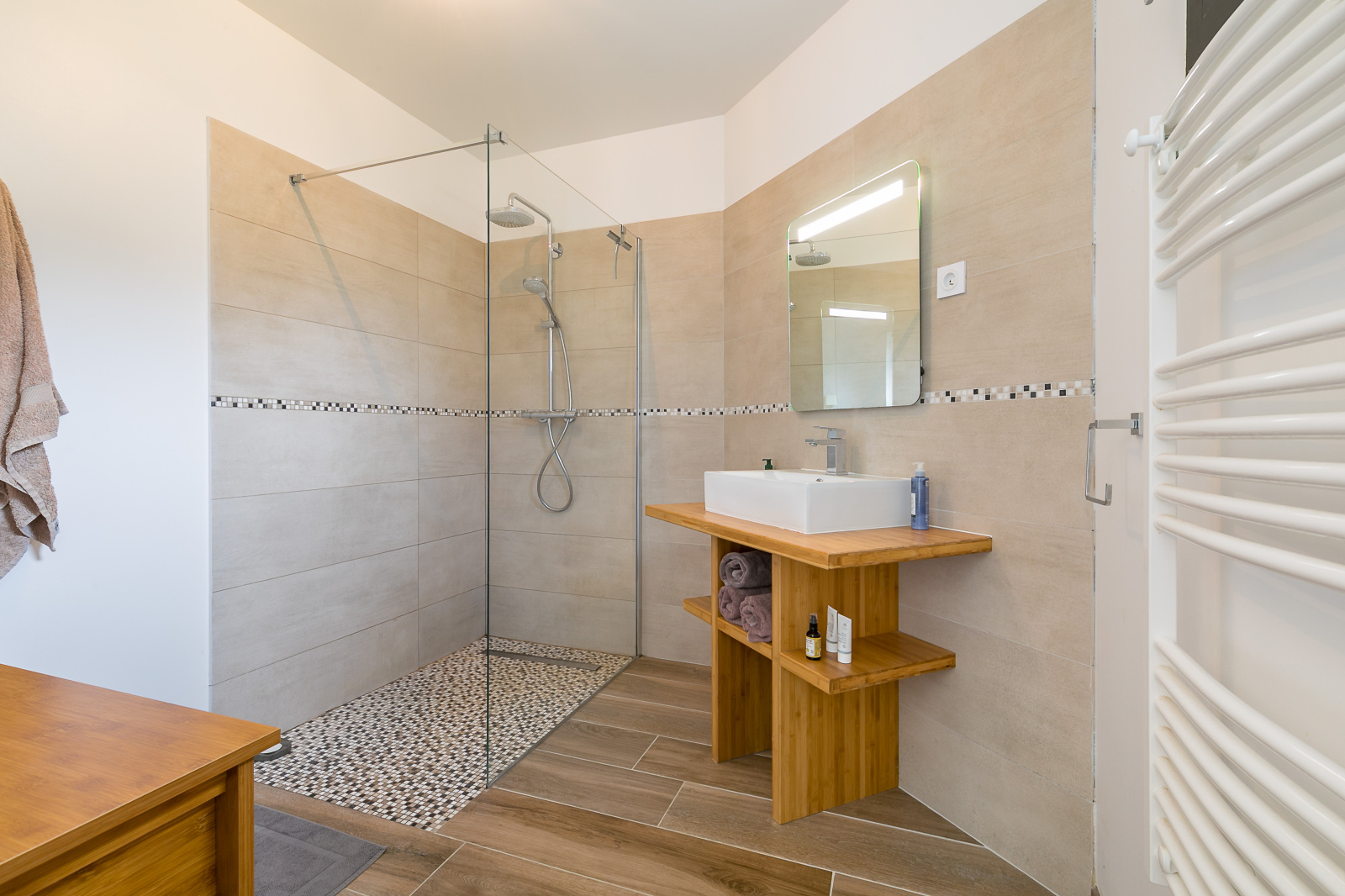 A l'extérieur, vous profiterez d'un terraind de plus de 800m² clos et arboré avec possibilité de construire une piscine.