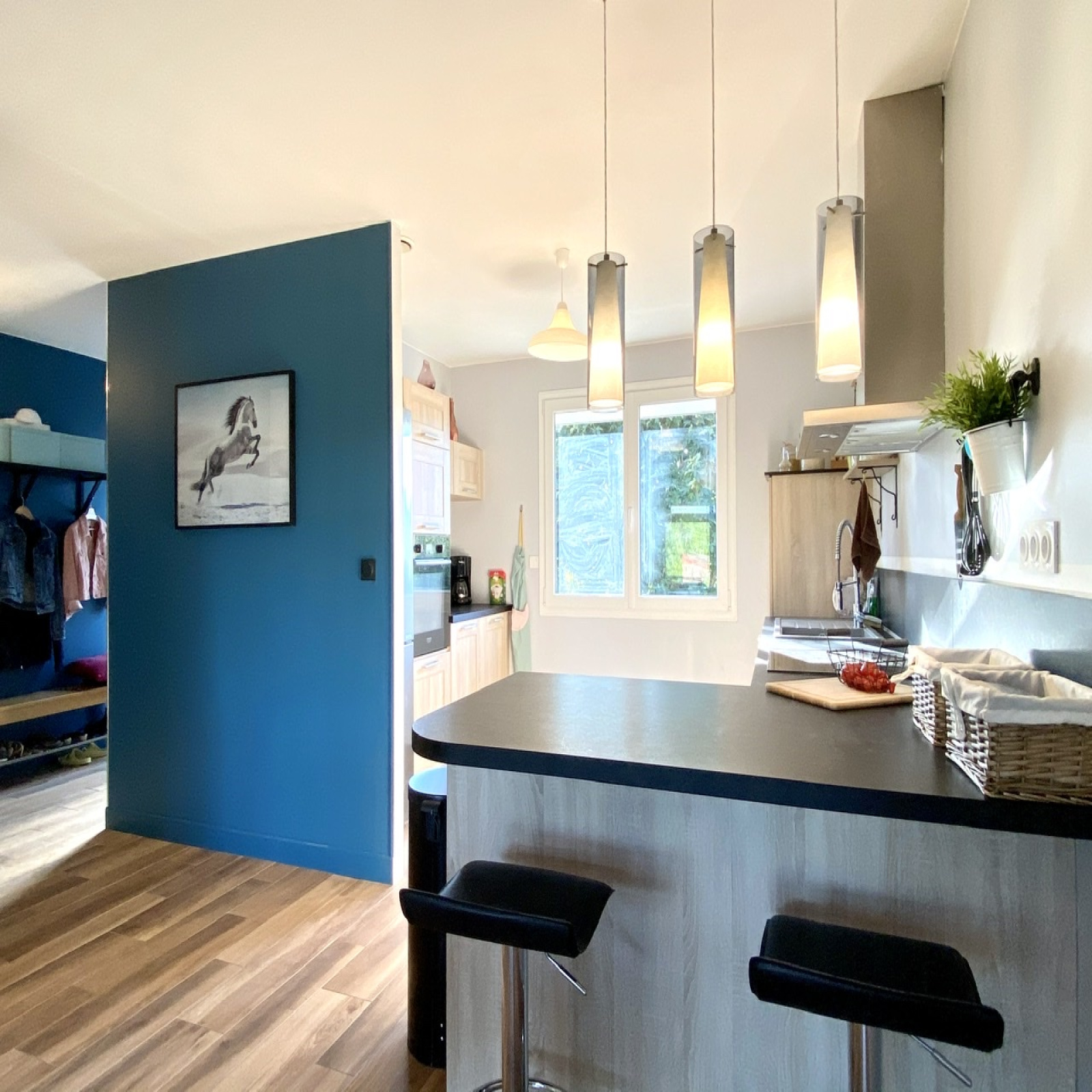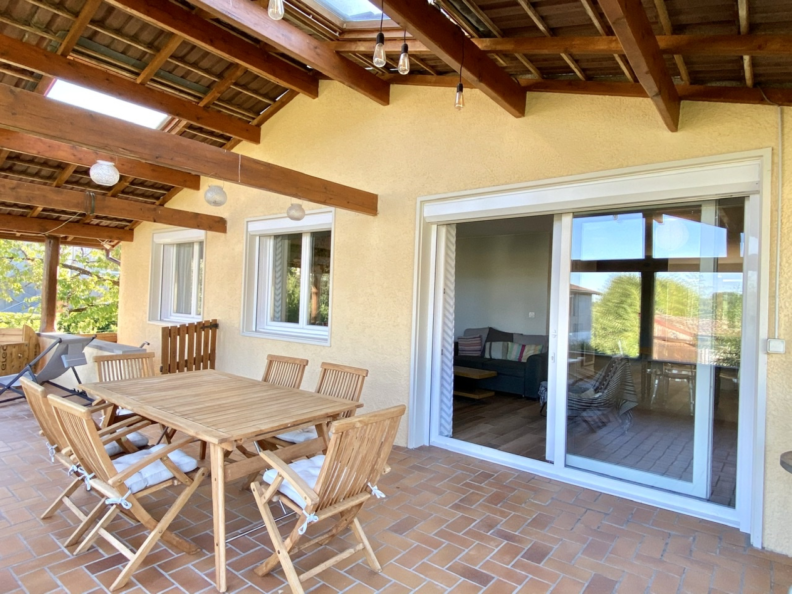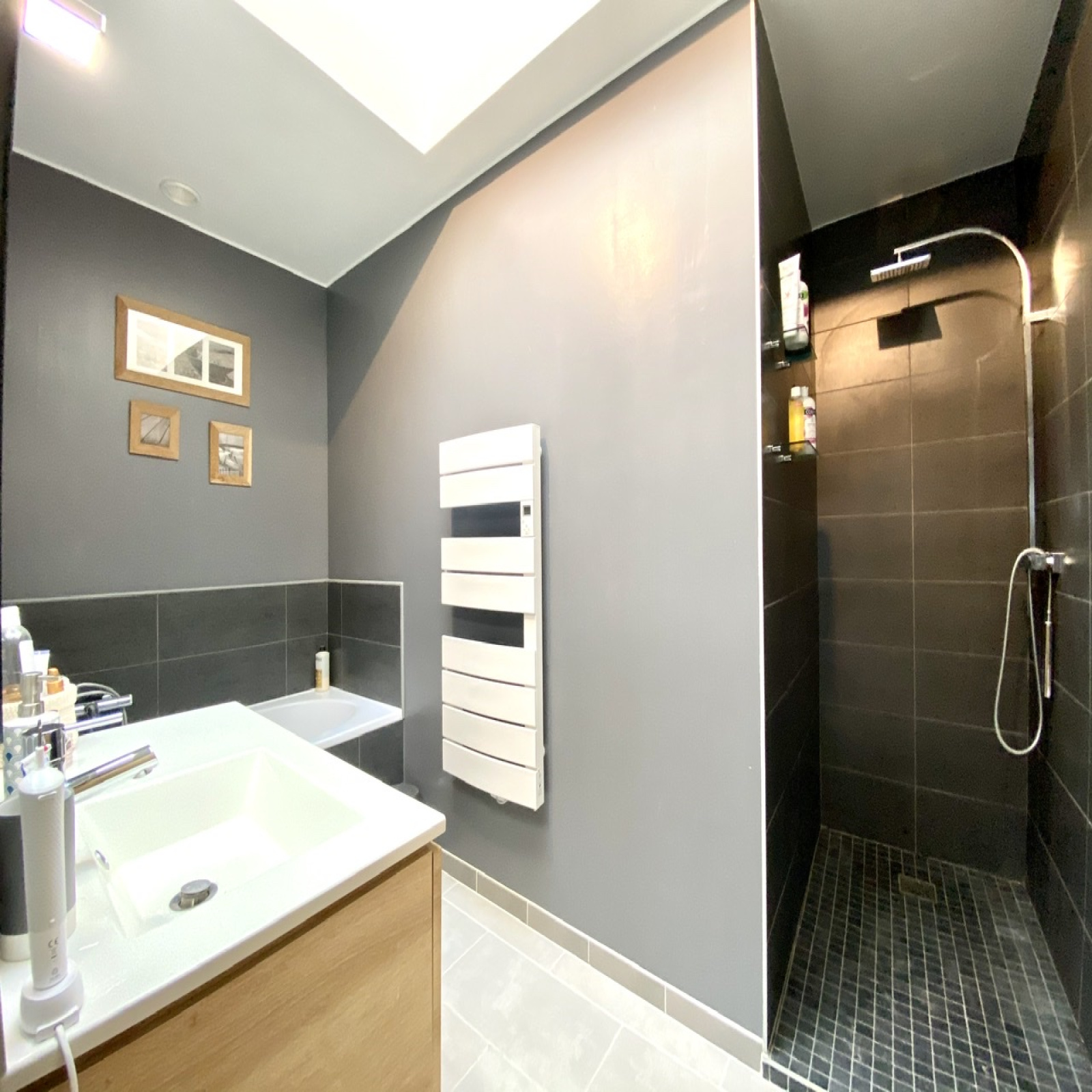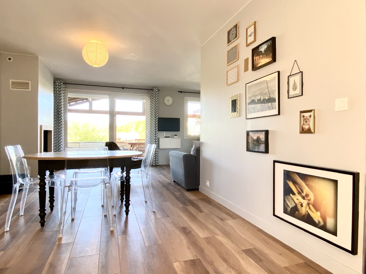 Cette maison dispose au premier niveau, d'une très jolie cuisine ouverte sur la pièce de vie donnant sur une terrasse de 35 m², d'un hall d'entrée, d'une salle de bains, d'un wc, de 2 chambres (16 m² et 11 m²).