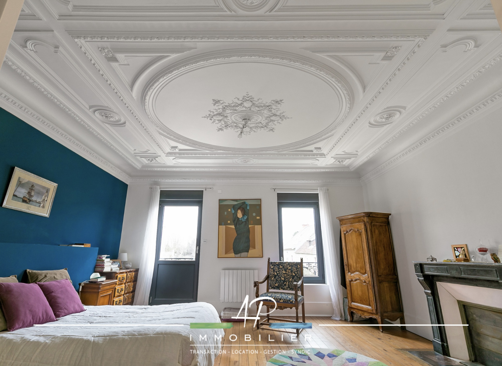 Au premier étage le palier distribue trois belles chambres dont la plus grande vous séduira par son magnifique plafond mouluré, une salle de bain avec douche et baignoire et un wc indépendant.