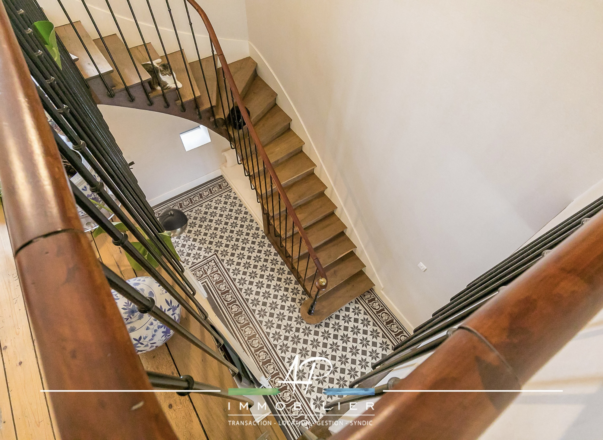 Les éléments de caractère y ont été soigneusement préservés pour ravir les amoureux de l’ancien: carreaux de ciment dans l’entrée, pierres apparentes, escalier en bois massif avec rambarde en fer forgé, parquets, moulures…