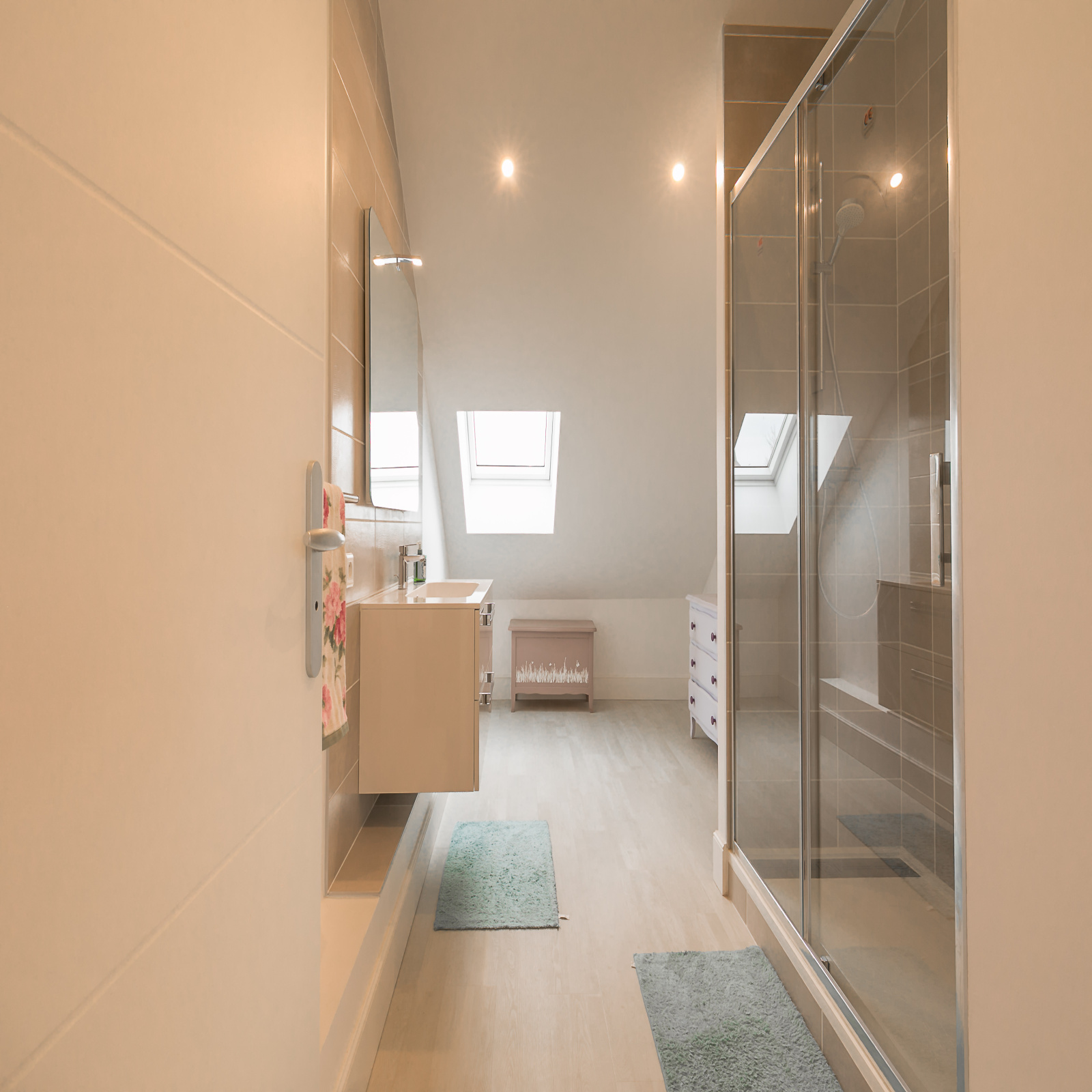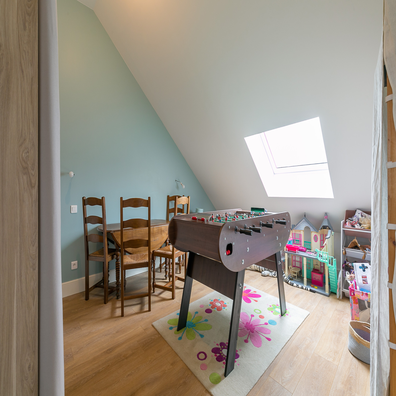 Au deuxième étage les enfants ou les amis profiteront d’une mezzanine (ou bureau), de deux vastes chambres, d’une salle d’eau et d’un wc indépendant.
