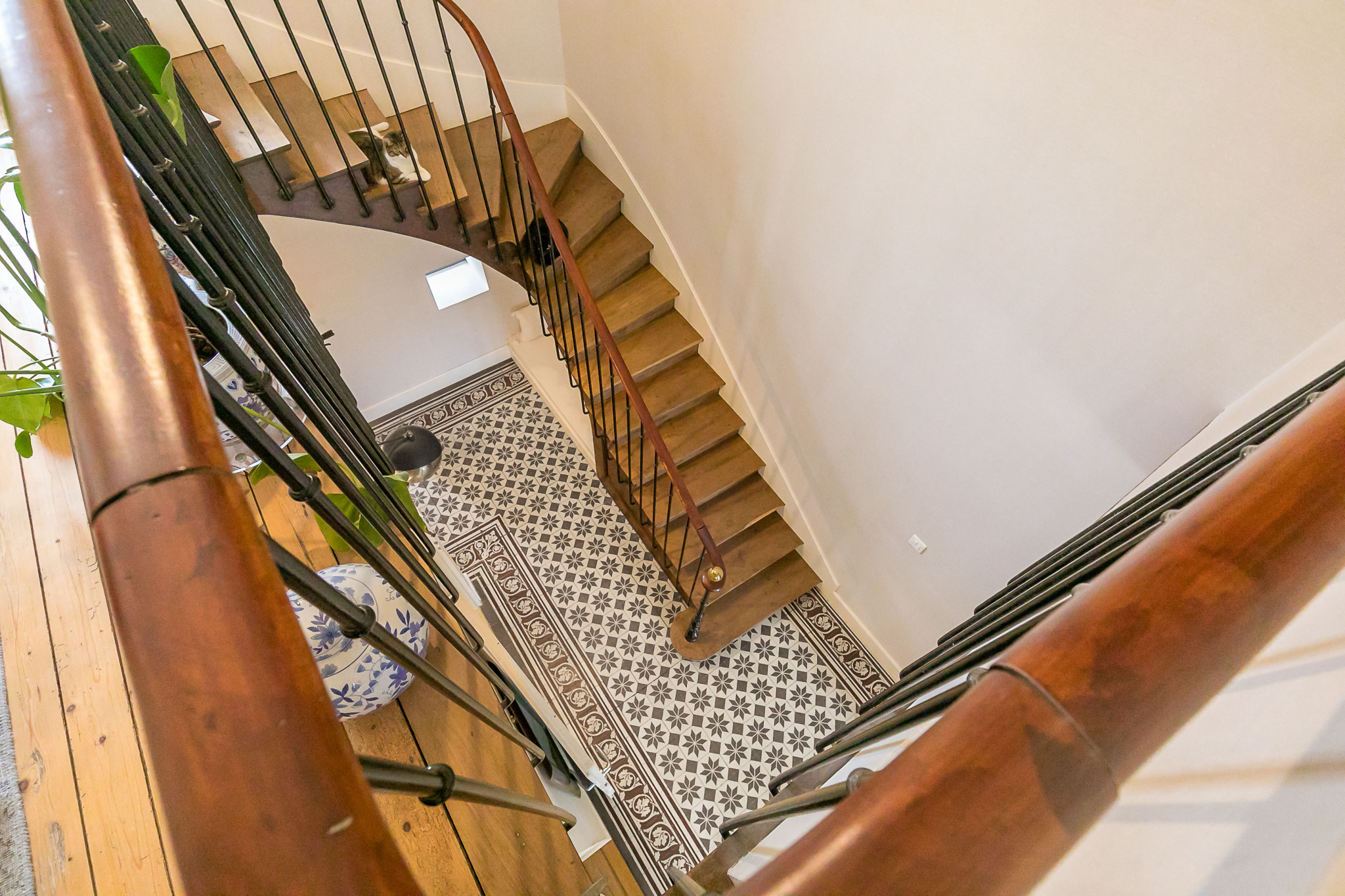 Les éléments de caractère y ont été soigneusement préservés pour ravir les amoureux de l’ancien: carreaux de ciment dans l’entrée, pierres apparentes, escalier en bois massif avec rambarde en fer forgé, parquets, moulures…