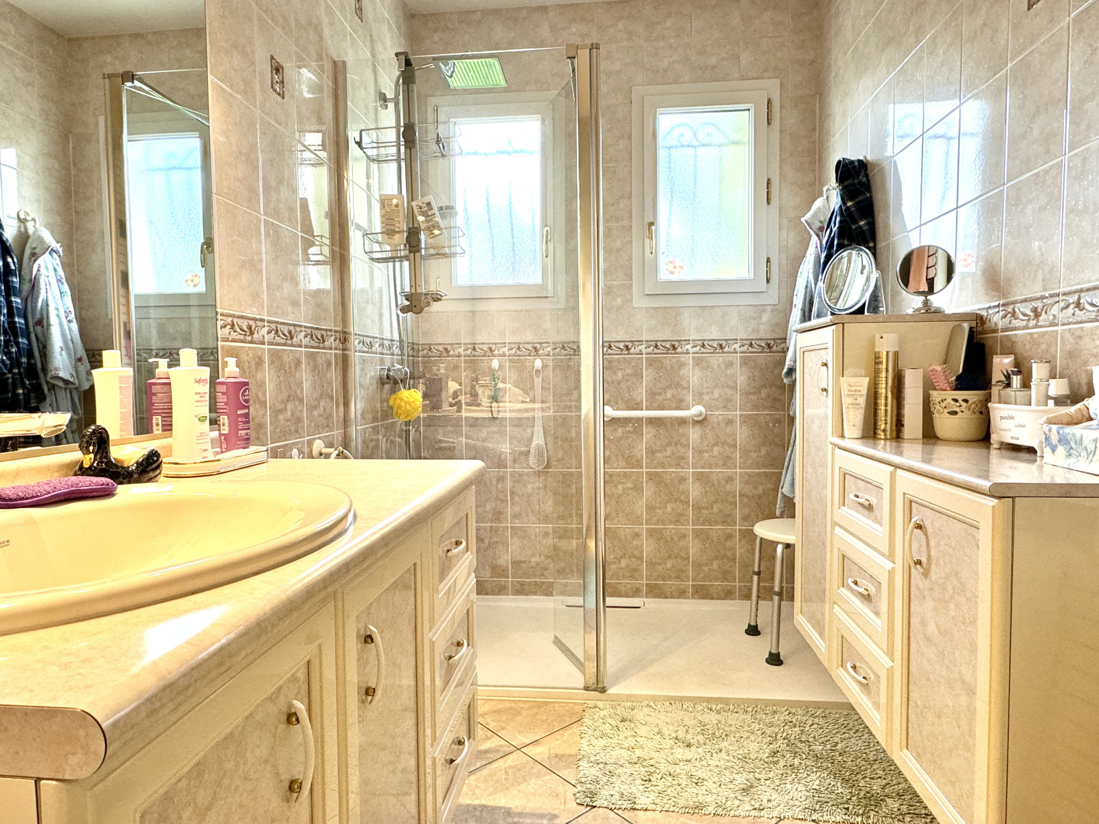 De nombreux travaux ont été entrepris tels que le double vitrage, la toiture et son isolation, les rives, les volets motorisés, climatisation dans la pièce de vie...
