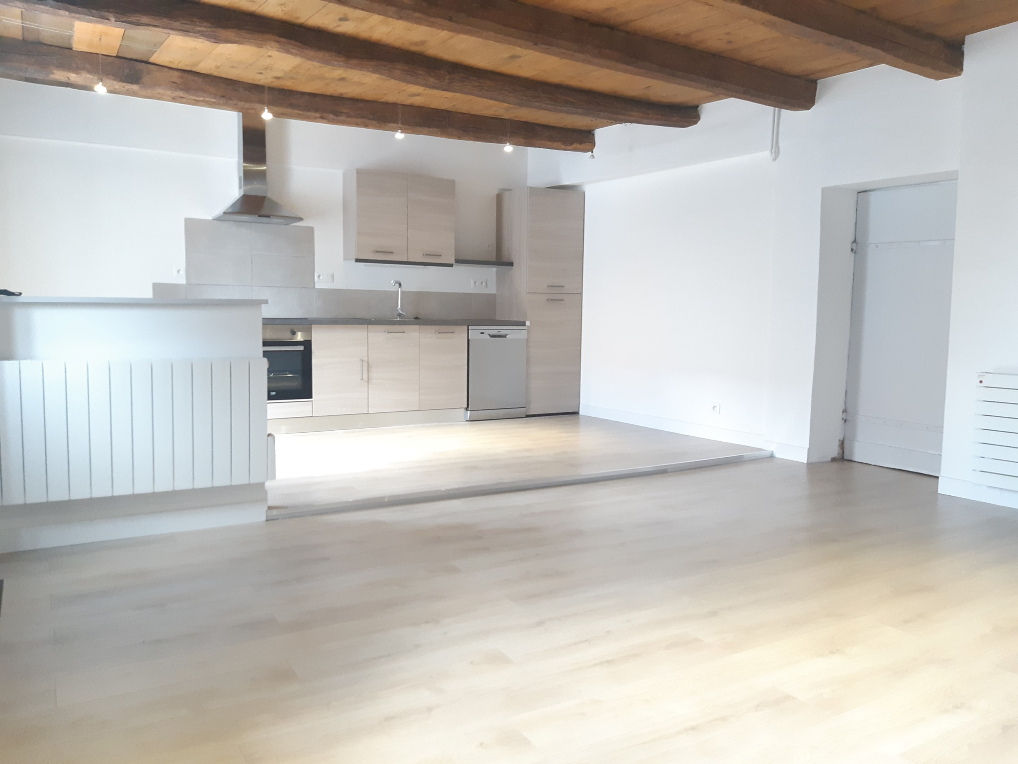 La maison dispose au rdc d'un salon/séjour avec cuisine ouverte entièrement équipée, salle de bains et wc, remise.