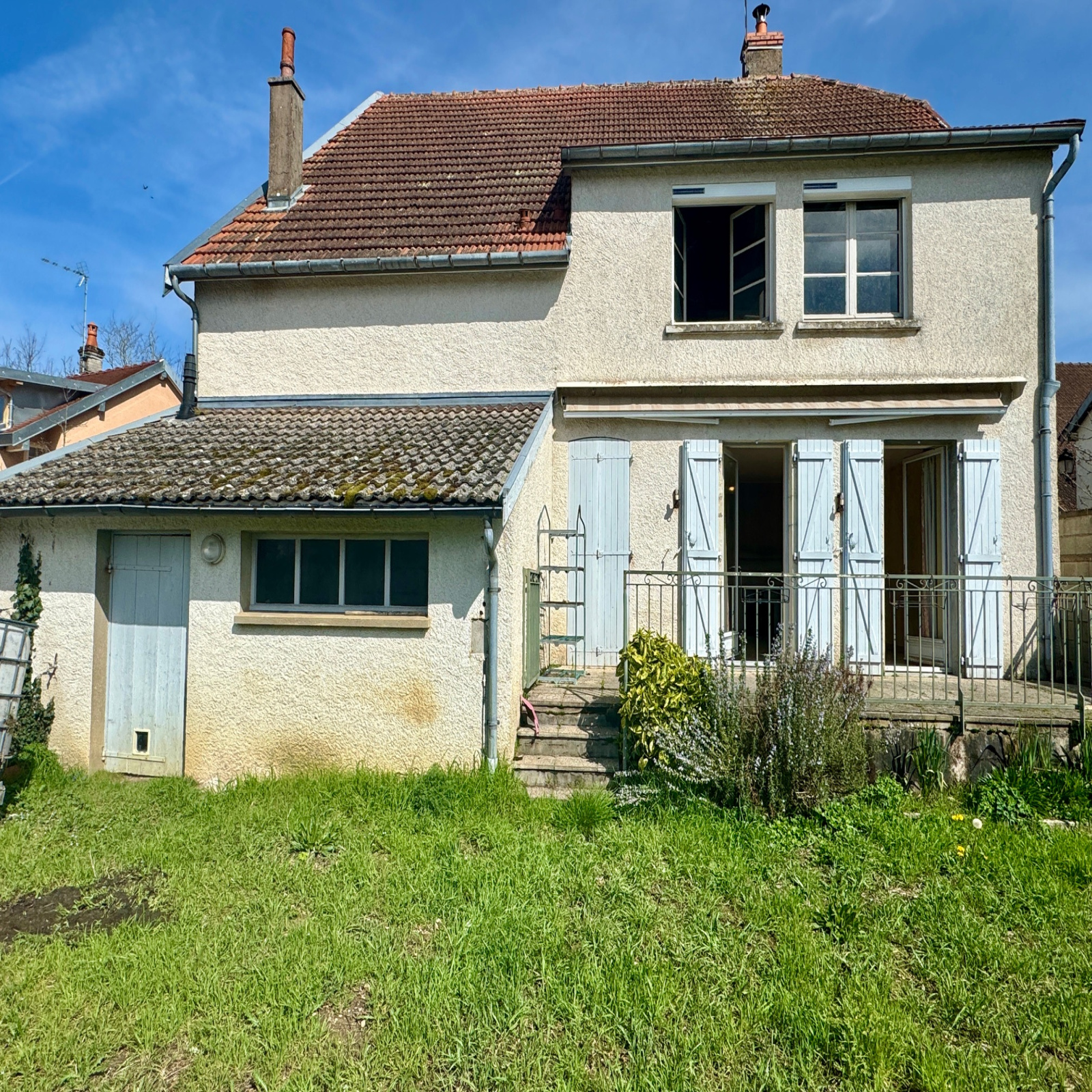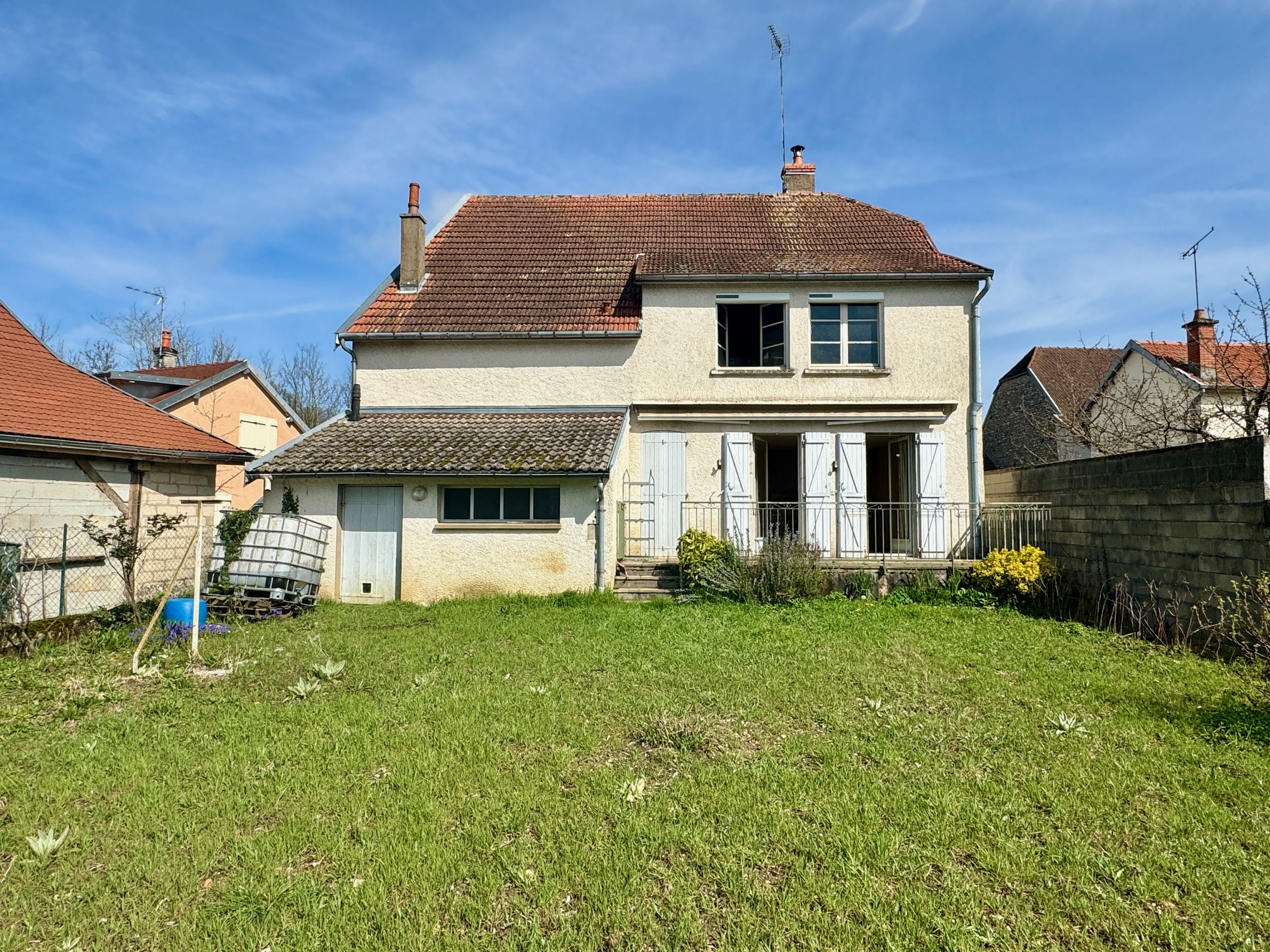 Cette maison de ville dispose pour le moment d'une surface habitable de 55 m² comprenant: une cuisine, un salon donnant sur une terrasse sud, une chambre, un cellier, une salle d'eau et wc.