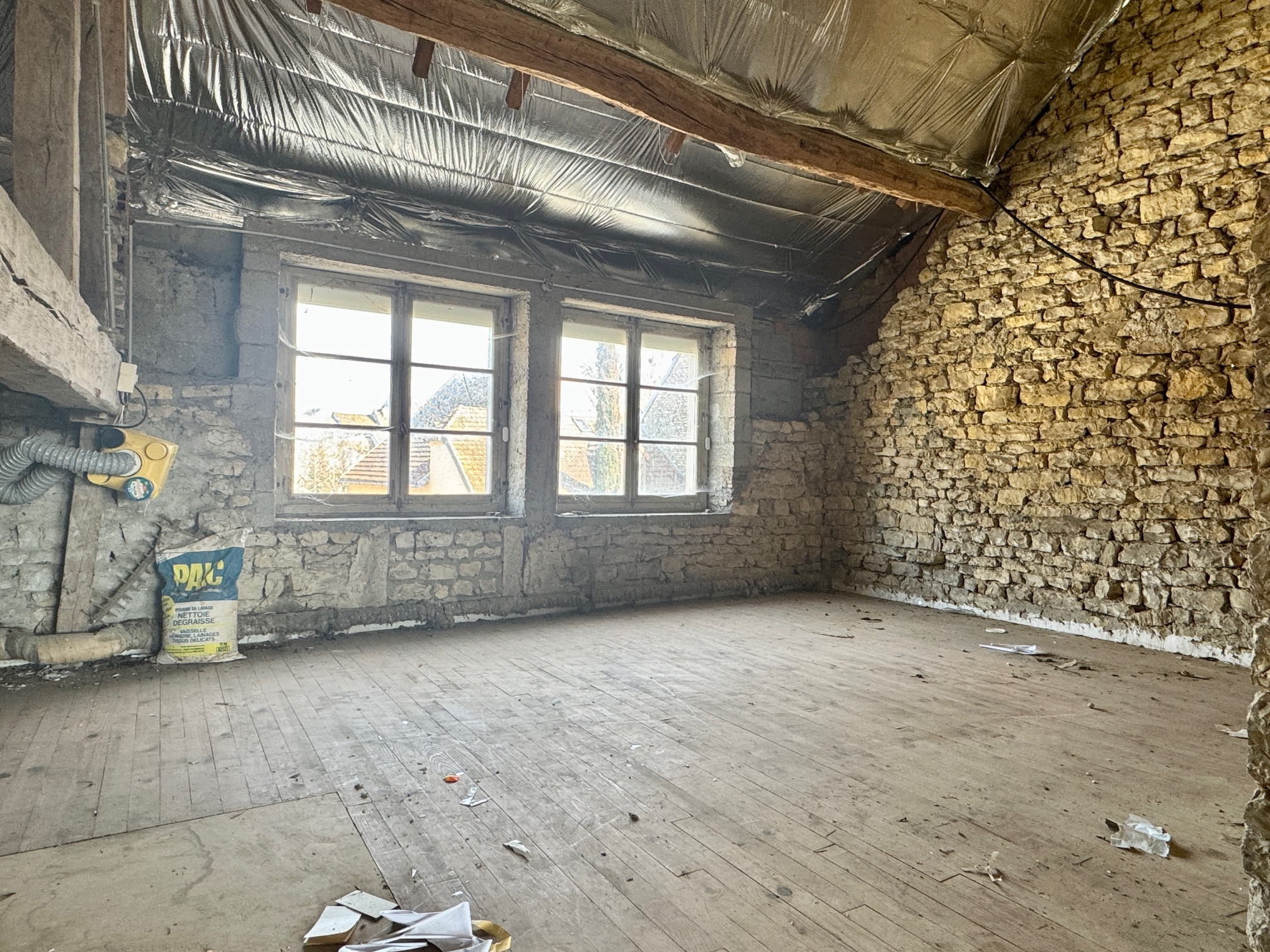 La surface habitable pourrait se développer à l'étage sur environ 95 m² supplémentaires. Des fenêtres sont déja créées pour l'aménagement des futures pièces.