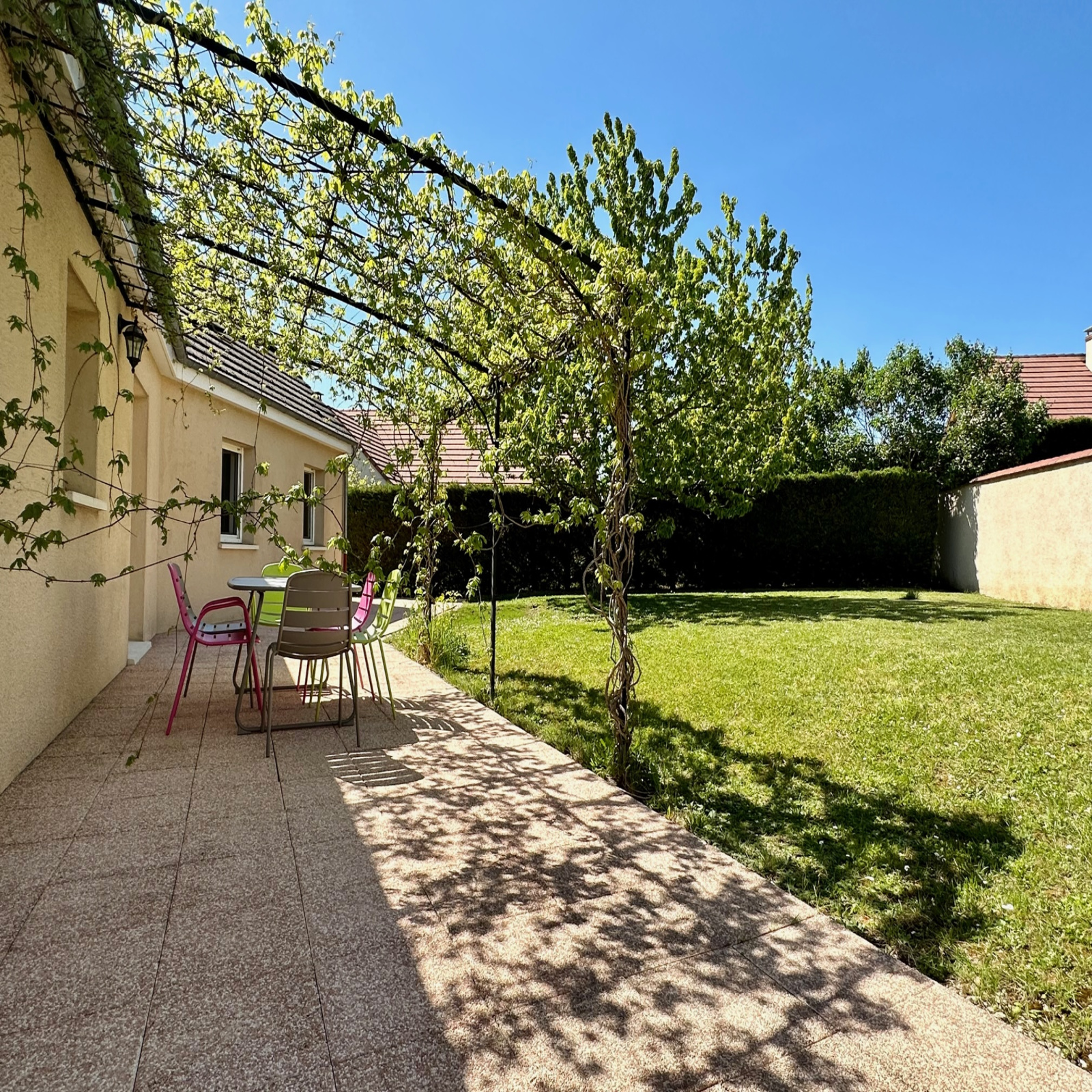 Le terrain de 620 m² est clos dans son intégralité et accueille une agréable terrasse.