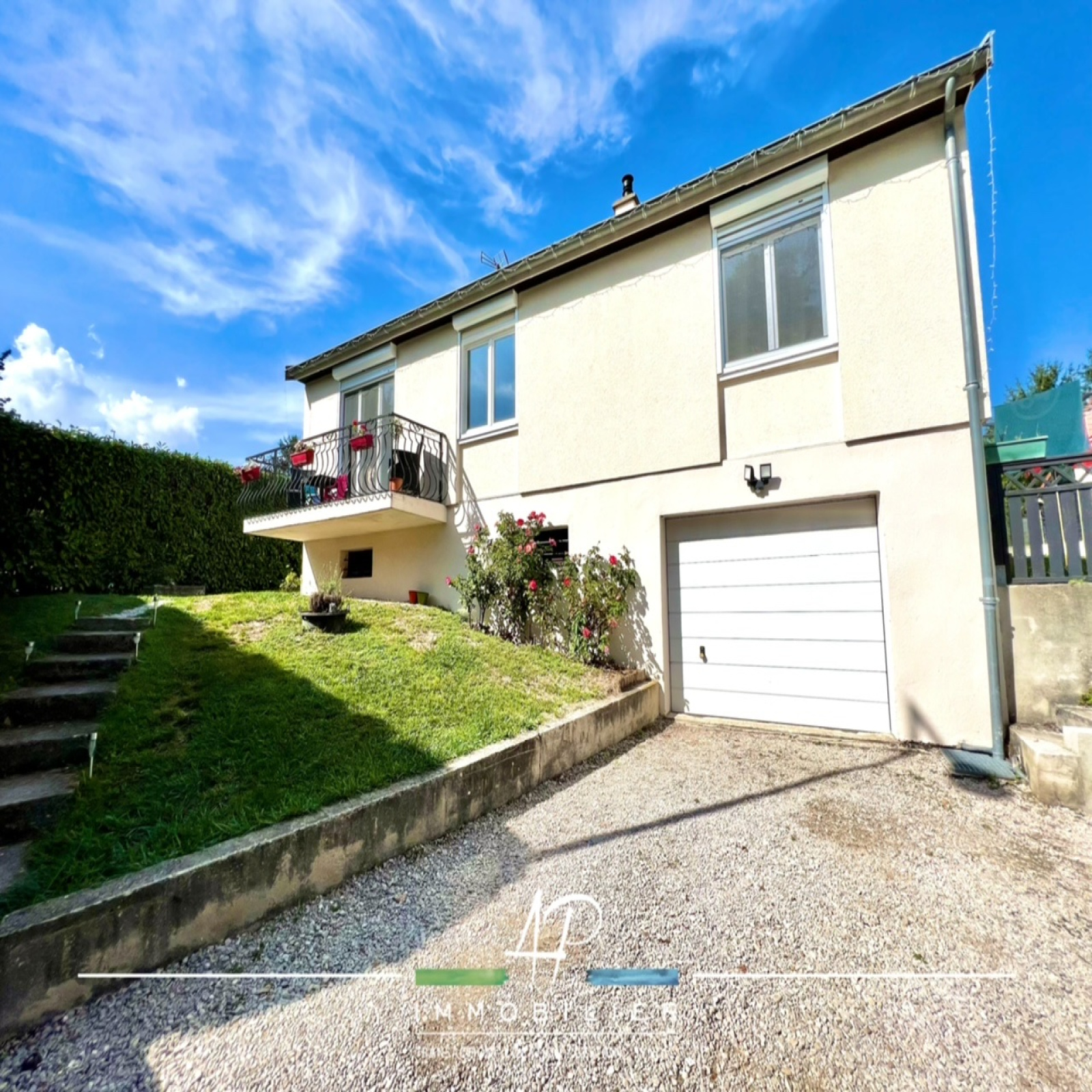 Une maison d'habitation élevée sur sous-sol composée de: entrée, séjour, cuisine, dégagement, trois chambres, wc, salle de douche, terrasse