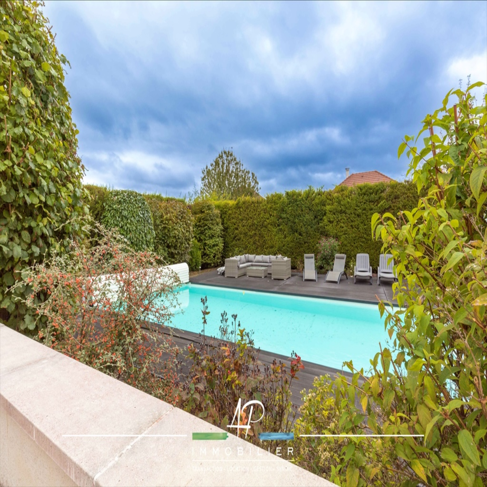 La piscine est chauffée et munie d'un rideau roulant motorisé.