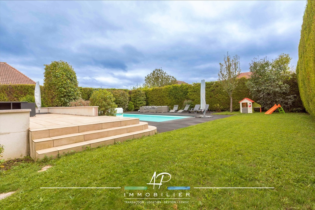 À l'extérieur, un jardin arboré de 825 m2, une terrasse carrelée exposée ouest et une piscine 5X10 et son aménagement en terrasse composite.