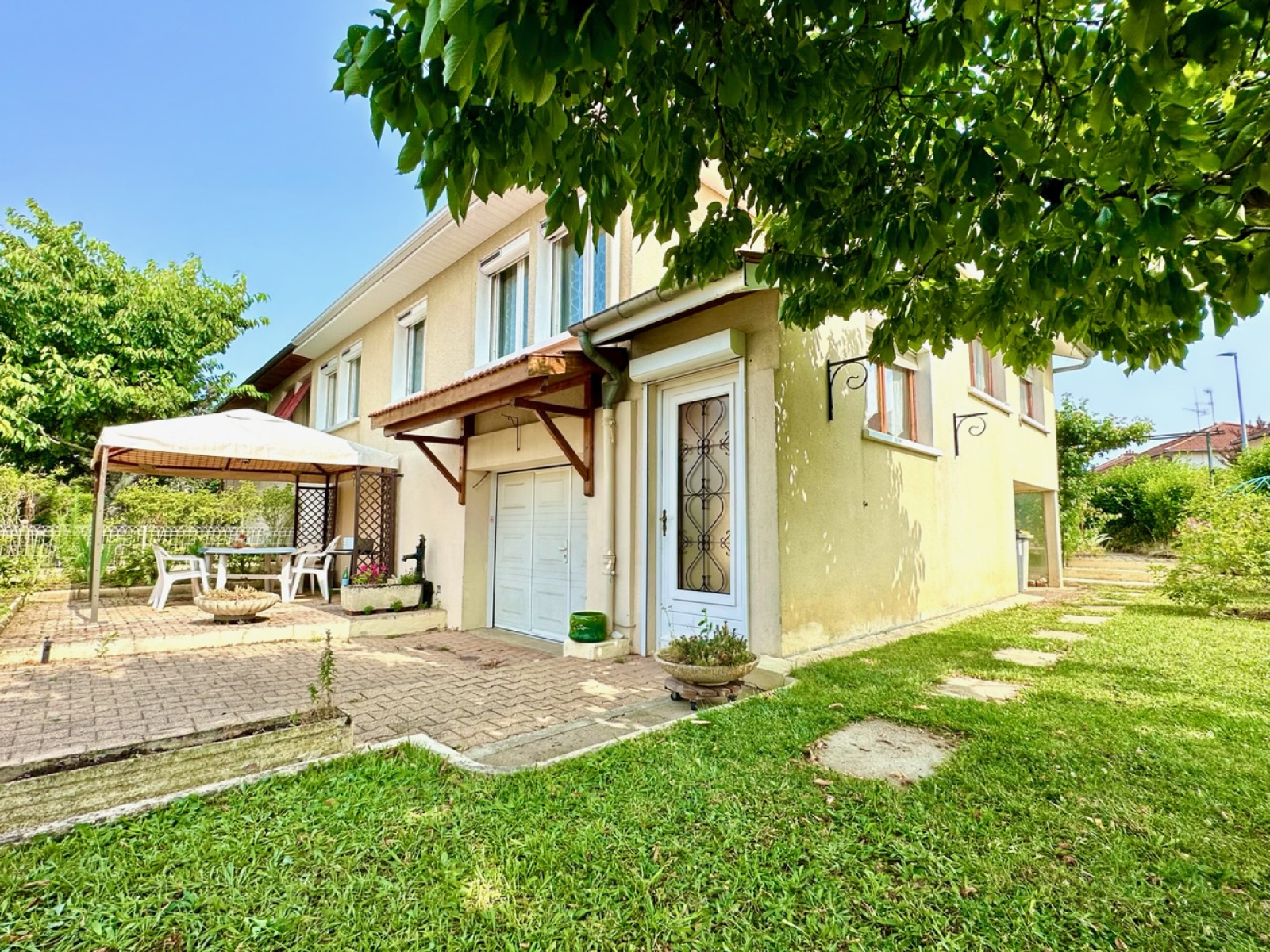 Saint-Apollinaire - Découvrez cette jolie maison jumelée située au calme d'un lotissement et à deux pas des commodités (commerces, transports, pôle médical...). Elle se compose d'un hall d'entrée, d'un salon/séjour lumineux exposé Sud, d'une cuisine indépendante, de deux chambres et enfin d'une salle de bains avec WC séparé. A noter que le salon peut être transformé en troisième chambre (plans initiaux). Au sous-sol, vous bénéficiez d'un garage avec porte motorisée ainsi que d'une grande pièce avec partie cave. Quelques travaux de rafraîchissements sont à prévoir pour mettre au goût du jour mais la maison est habitable en l'état. Coté technique, la chaudière gaz est récente (2020) et les fenêtres disposent de volets roulants à energie solaire. A l'extérieur, la parcelle de 305m² est répartie en trois espaces: la terrasse plein Sud pour profiter des soirées d'été, un espace engazonnée pour les enfants et un potager à l'arrière.