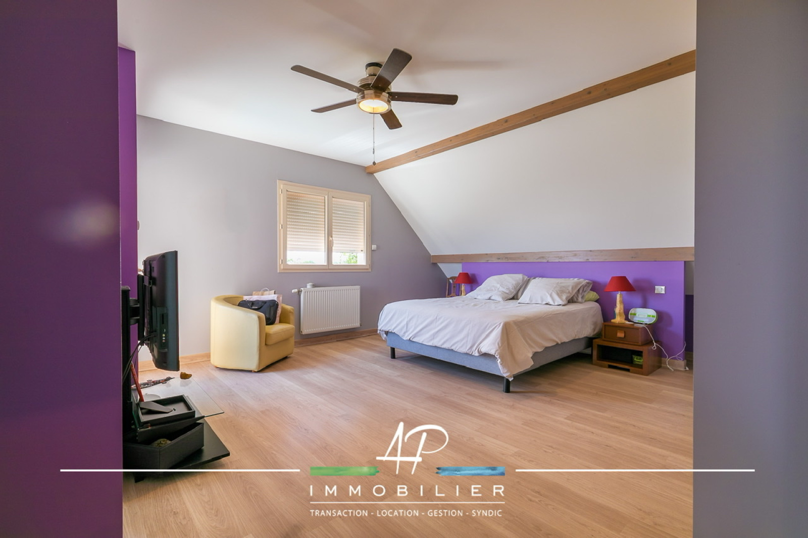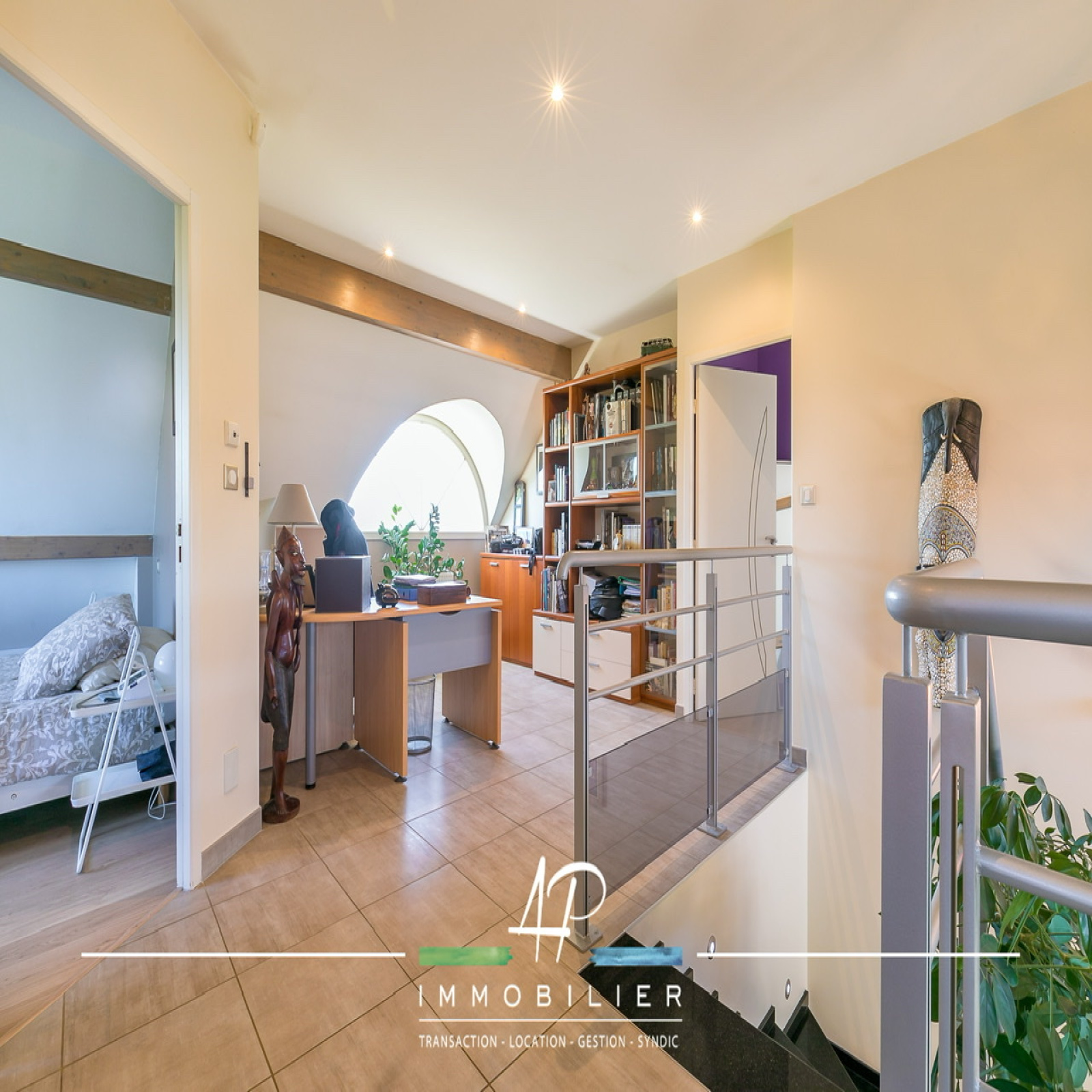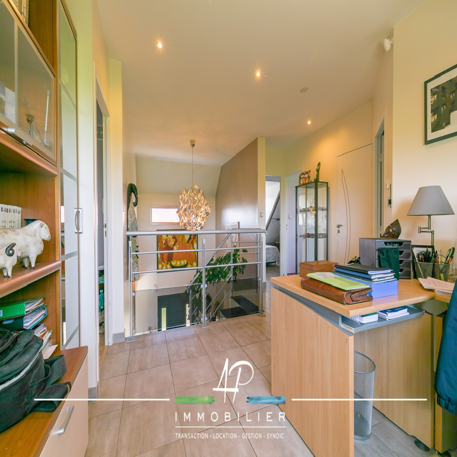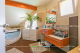 - à l’étage une mezzanine, une suite parentale avec salle de bains (baignoire hydromassante + douche), deux grandes chambres, une salle d’eau et un wc.