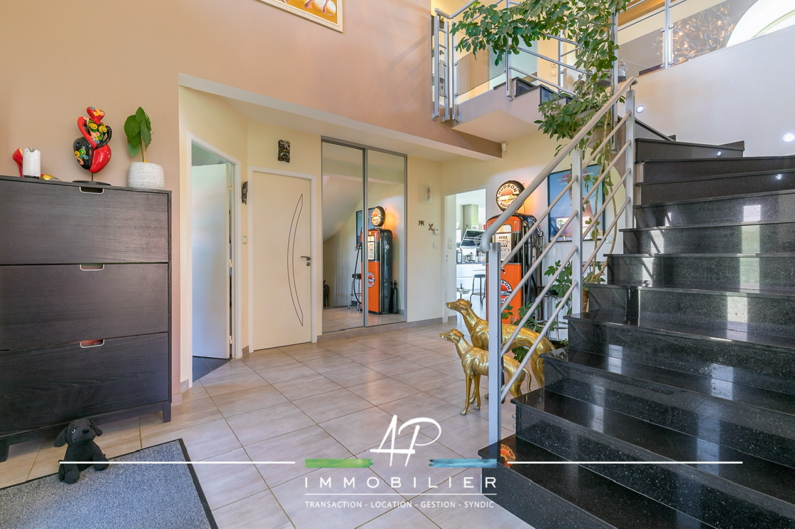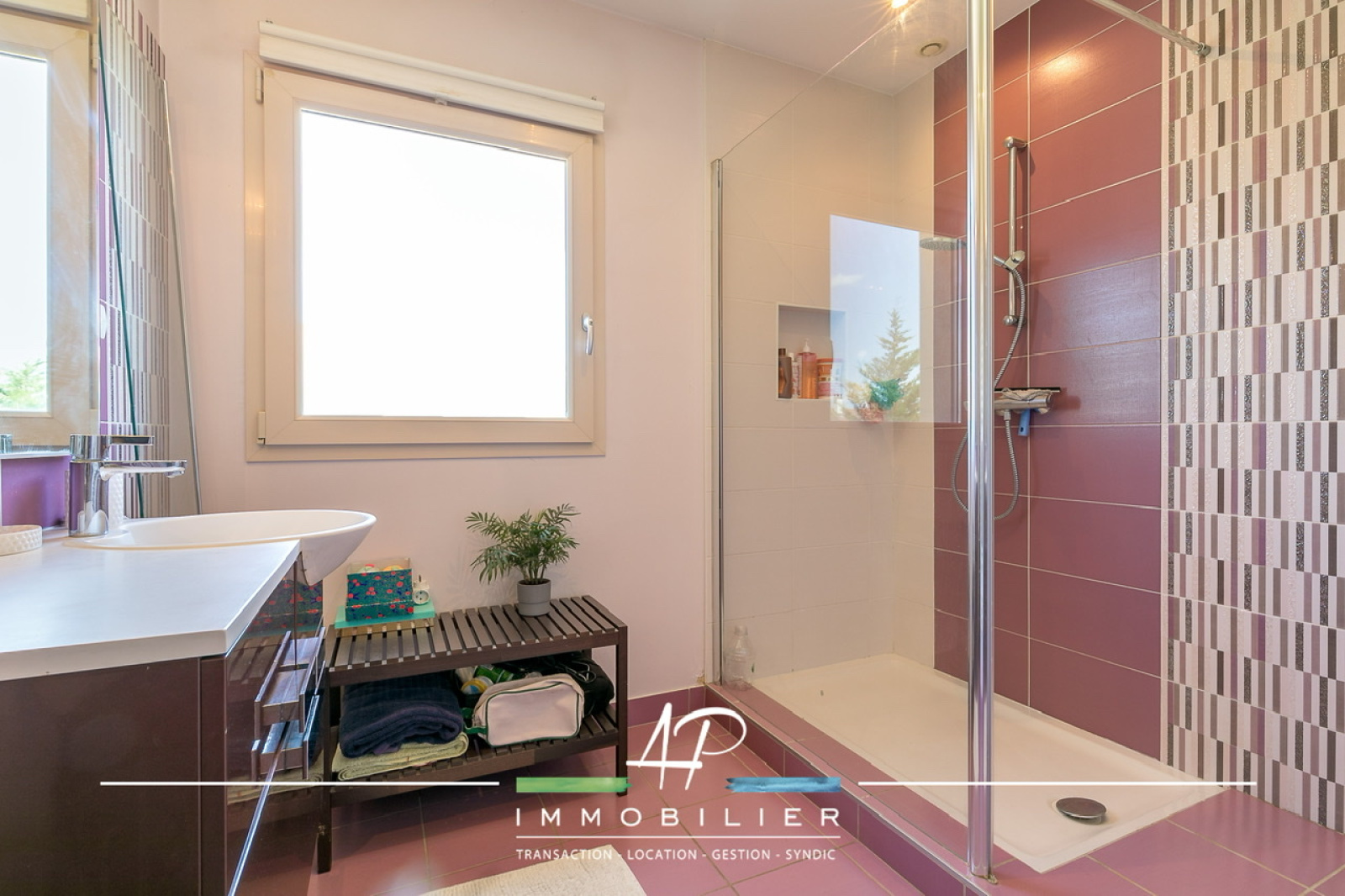 - au RDC: une pièce de vie de 73m² triple exposition avec cuisine ouverte aménagée et équipée haut de gamme (plans en granit, four vapeur, machine à café intégrée...), un grand hall d'entrée, une chambre avec salle d'eau, un wc et un cellier.