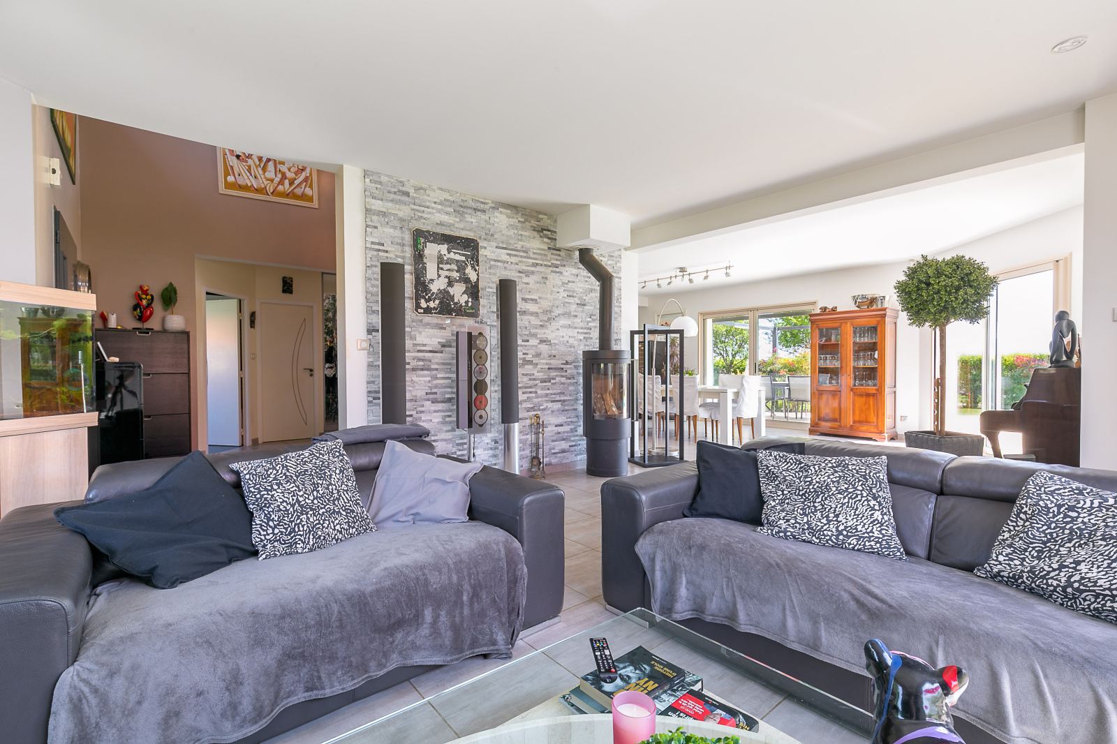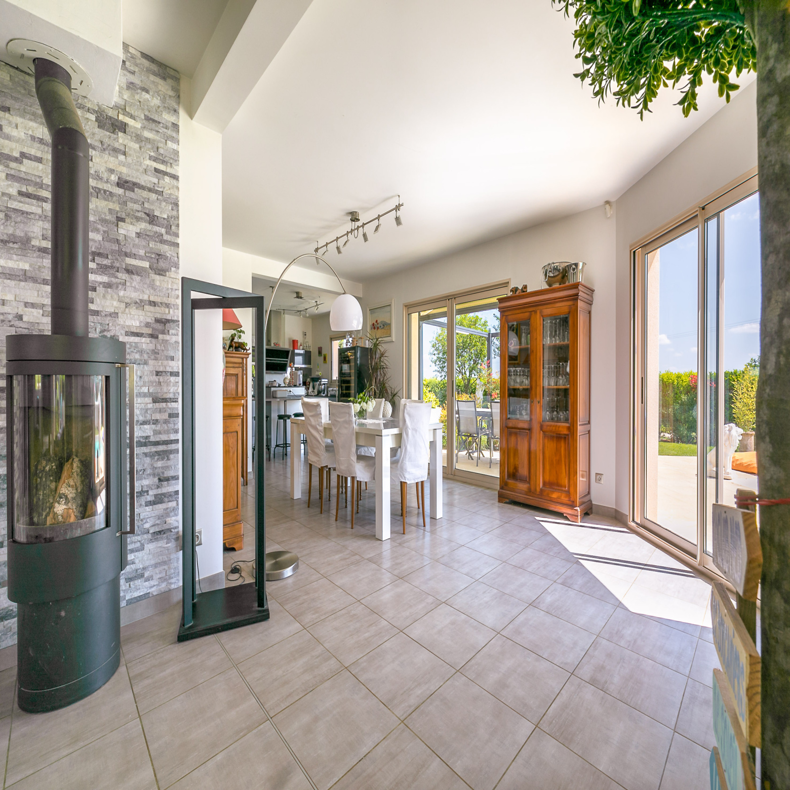 La maison dispose de nombreuses prestations telles que l'aspiration centralisée, adoucisseur d'eau, chauffage au sol (gaz), poele à bois, volets roulants électriques, alarme, portail motorisé...