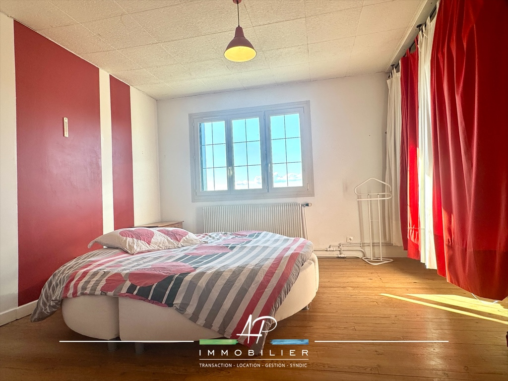 Au premier niveau: un salon/séjour avec insert bois, 2 grandes chambres ( 17,23 et 15,24 m² ), une cuisine équipée, une salle d'eau et un wc.