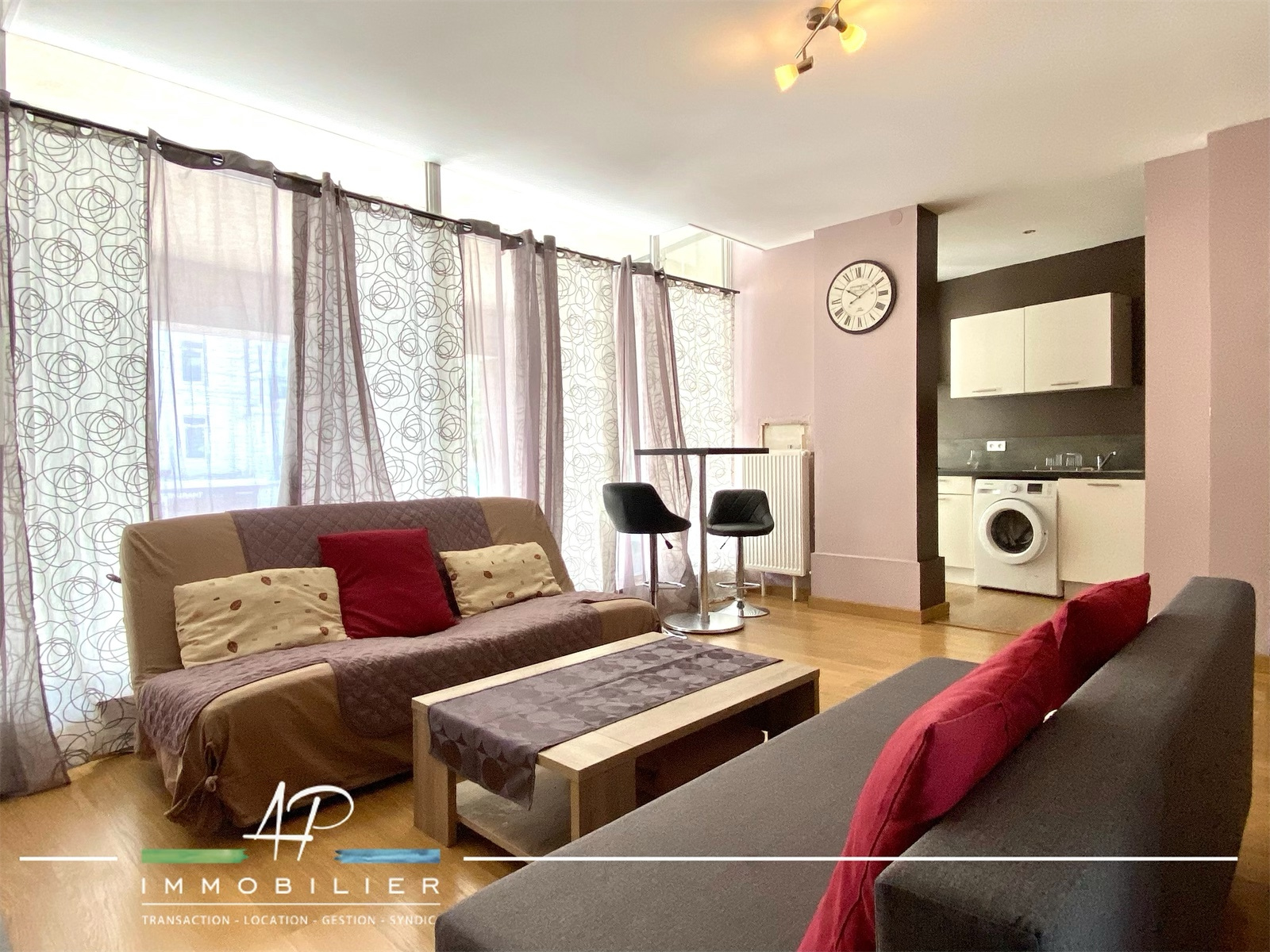 Situé en centre ville, à deux pas de la gare et du Tram, découvrez ce bel appartement au premier étage comprenant: une salle de séjour donnant sur une cuisine aménagée et équipée avec coin repas, deux chambres dont une avec placard aménagé, salle de bains avec wc. Possibilité d'acquérir un garage en sus.