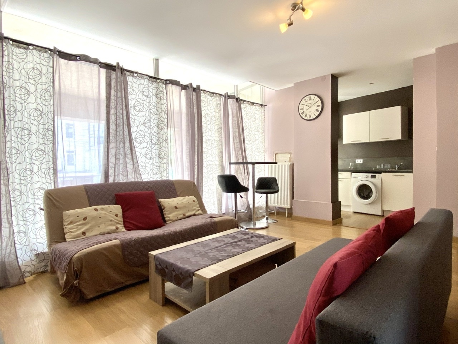 Situé en centre ville, à deux pas de la gare et du Tram, découvrez ce bel appartement au premier étage comprenant: une salle de séjour donnant sur une cuisine aménagée et équipée avec coin repas, deux chambres dont une avec placard aménagé, salle de bains avec wc. Possibilité d'acquérir un garage en sus.
