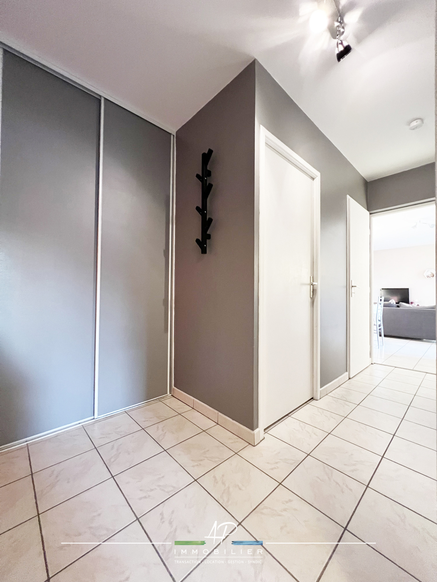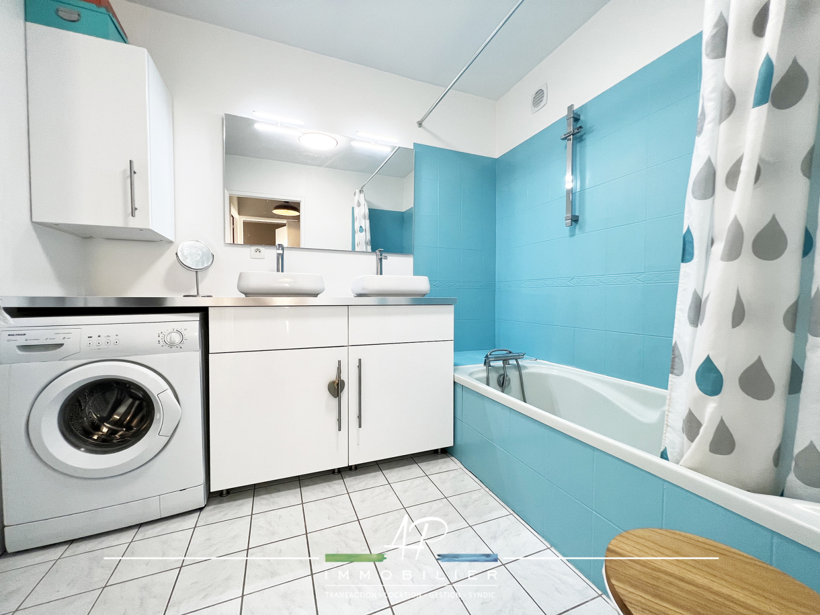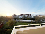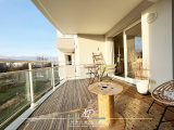 Cet appartement se compose d'une entrée (avec placard mural aménagé), d'une pièce de vie de 33m2 (avec cuisine équipée) ouvrant sur la terrasse, de deux chambres (10,5m2 et 12m2) donnant sur un beau balcon de 4m2, d'une salle de bains et d'un wc séparé.
