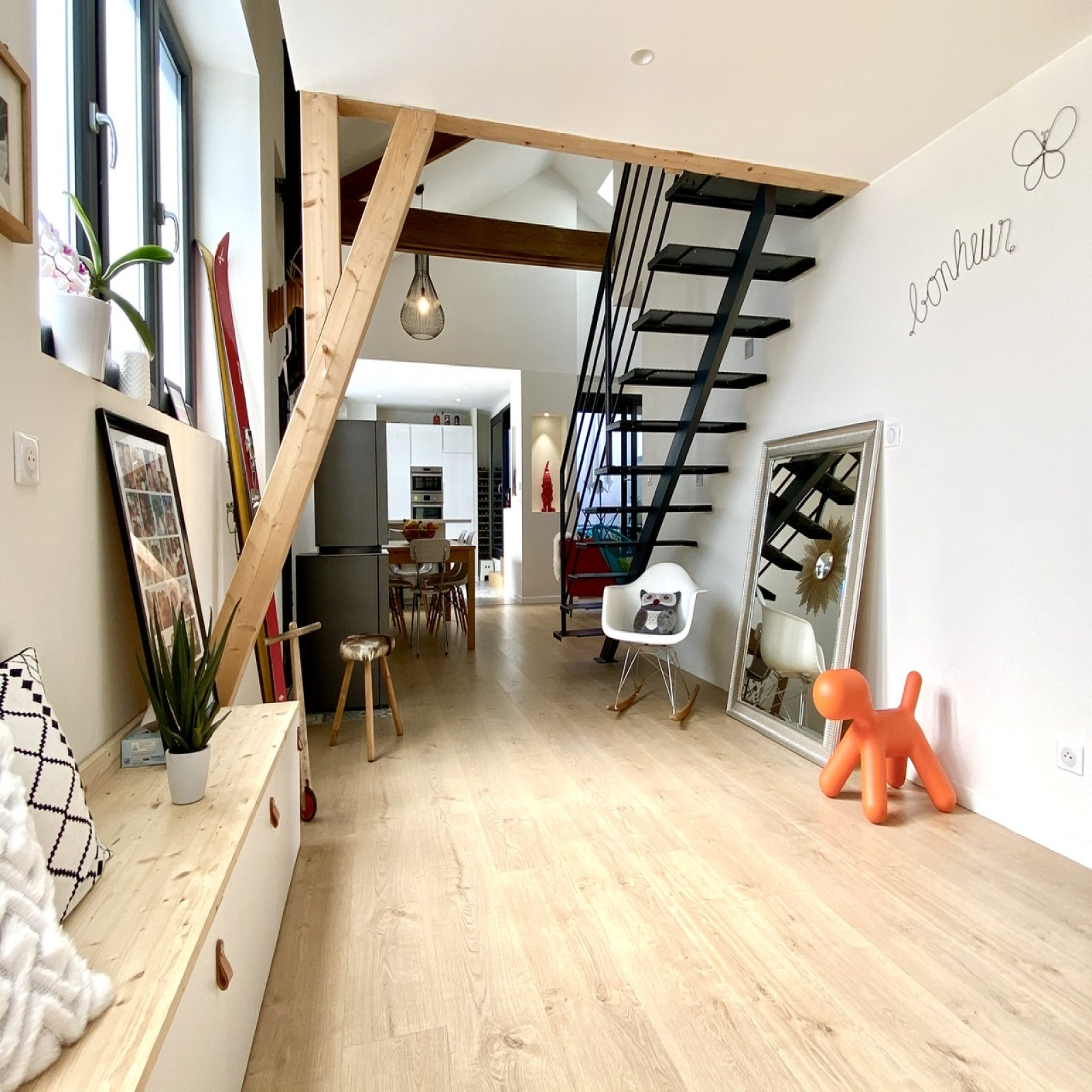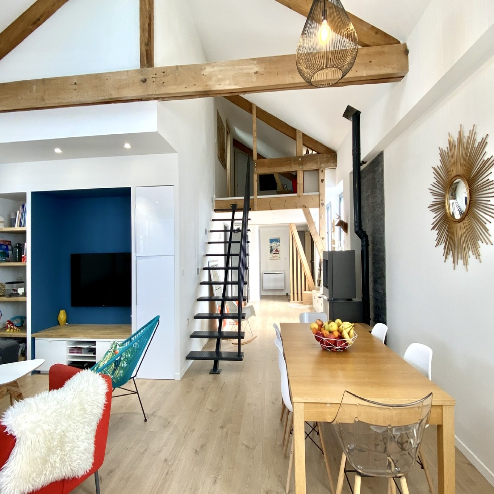 Vrai coup de coeur pour ce loft entièrement rénové en 2016 aux volumes atypiques et parfaitement pensés. Au rez-de-chaussée, vous disposez d'un salon/séjour avec plafond cathédrale et cuisine équipée donnant sur une terrasse bien exposée, suite parentale avec salle de bains et dressing aménagé, cellier, wc indépendant. A l'étage, la mezzanine dessert deux chambres d'enfants avec lits aménagés en sous pente et une salle d'eau avec wc. Chauffage par poêle à pellets. Dépendance. Parking privatif x2.