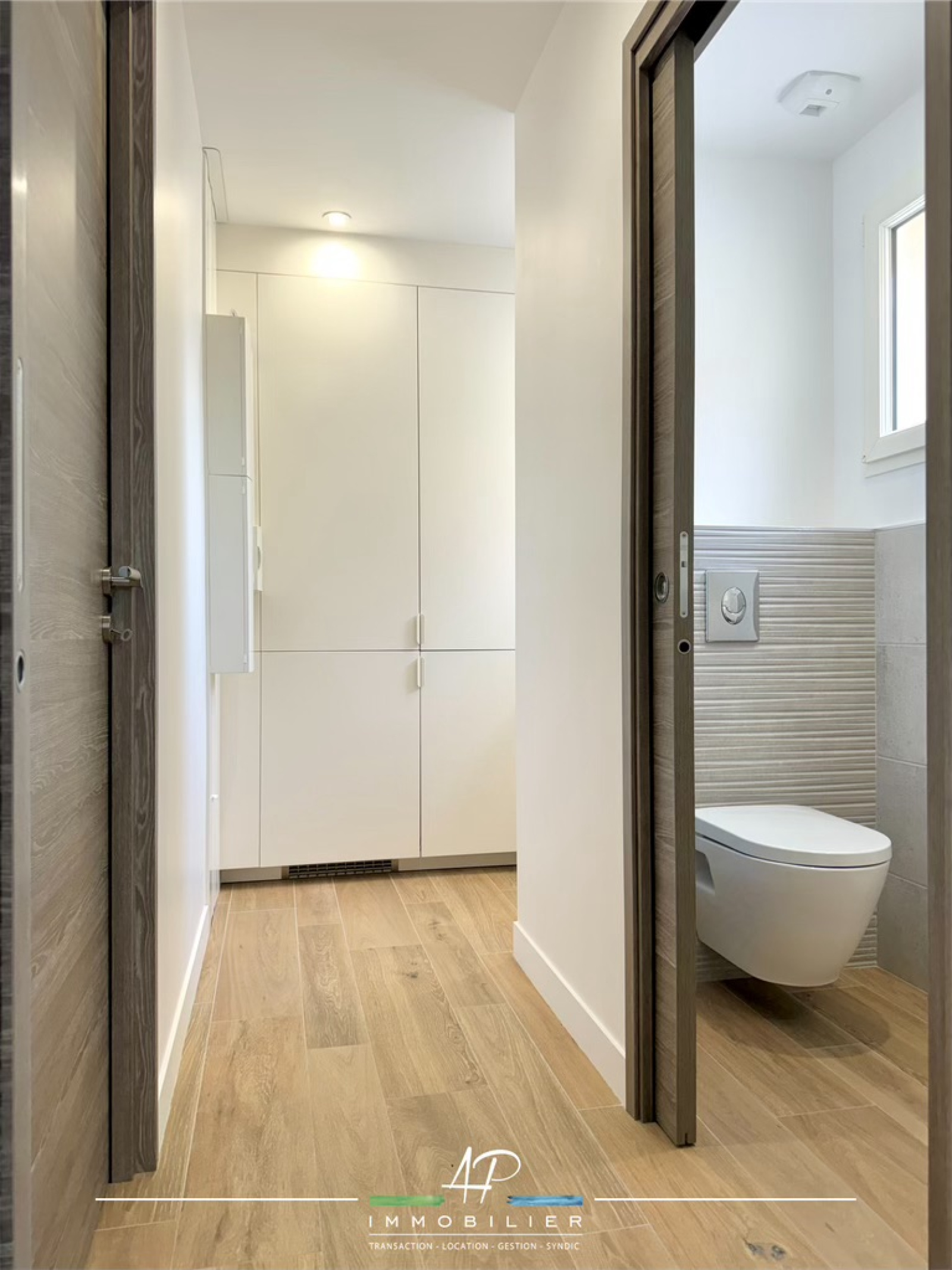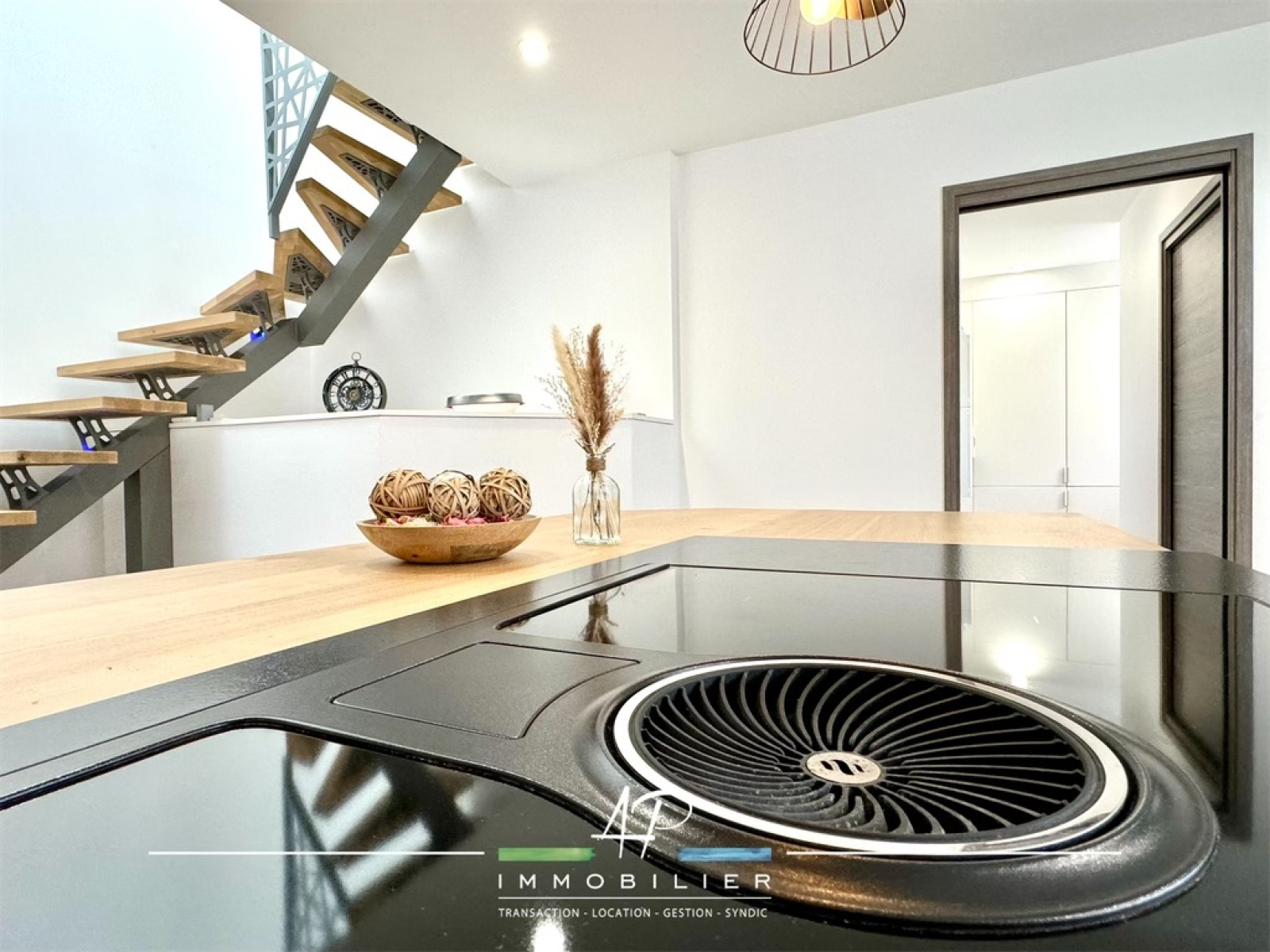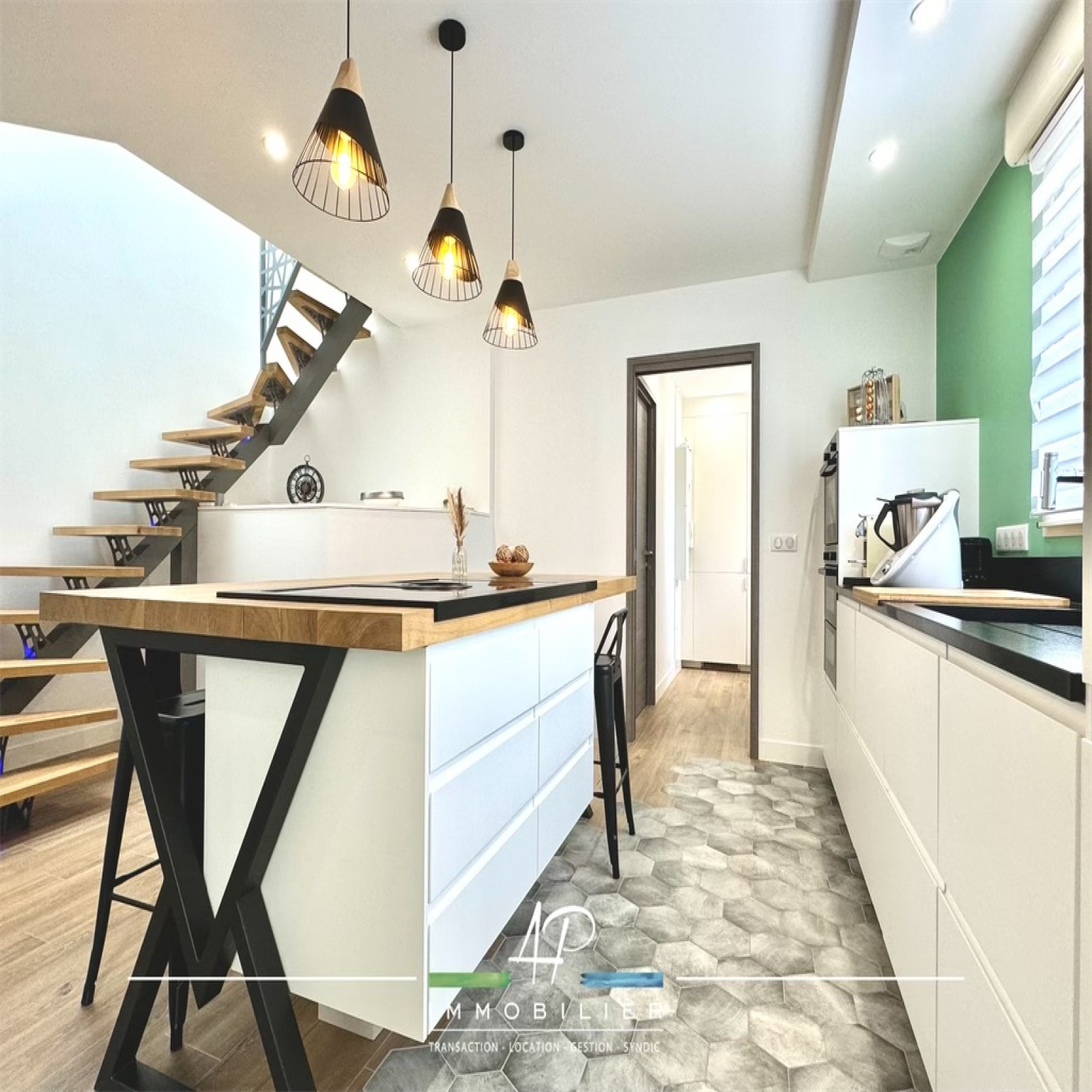 Elle se compose au rez de chaussée d'un salon séjour avec une superbe cuisine aménagée et équipée (électroménager haut de gamme), d'un espace buanderie entièrement aménagé, d'un WC indépendant avec lave mains ainsi qu'un accès sur un garage isolé, carrelé et chauffé! Petit plus, une cave est accessible par un monte charge motorisé.
