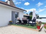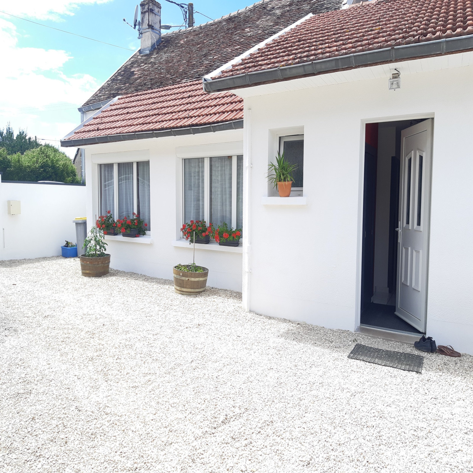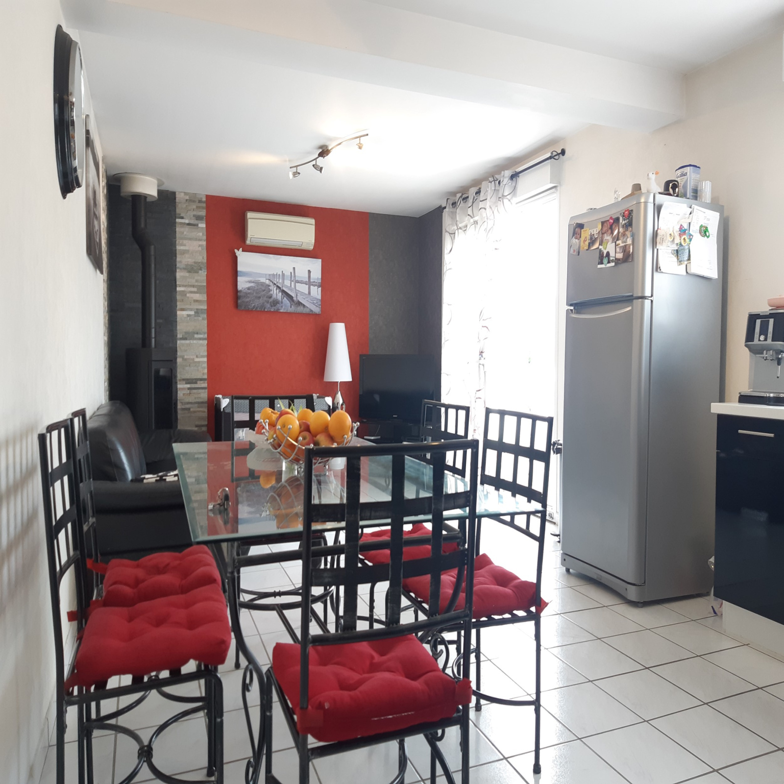 Charmante maison ancienne rénovée, entièrement de plain pied. Elle est composée d' un salon/séjour avec poêle à bois et climatisation réversible, une cuisine ouverte équipée, un hall avec placard, une salle d’eau avec double vasque, un wc, dégagement, 2 chambres.
