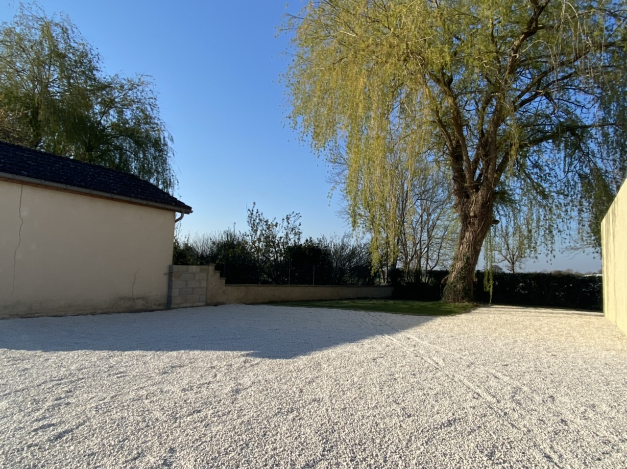 Le terrain de 861 m² est clos et arboré, il possède une partie cour gravillonnée et un grand espace de pelouse.
