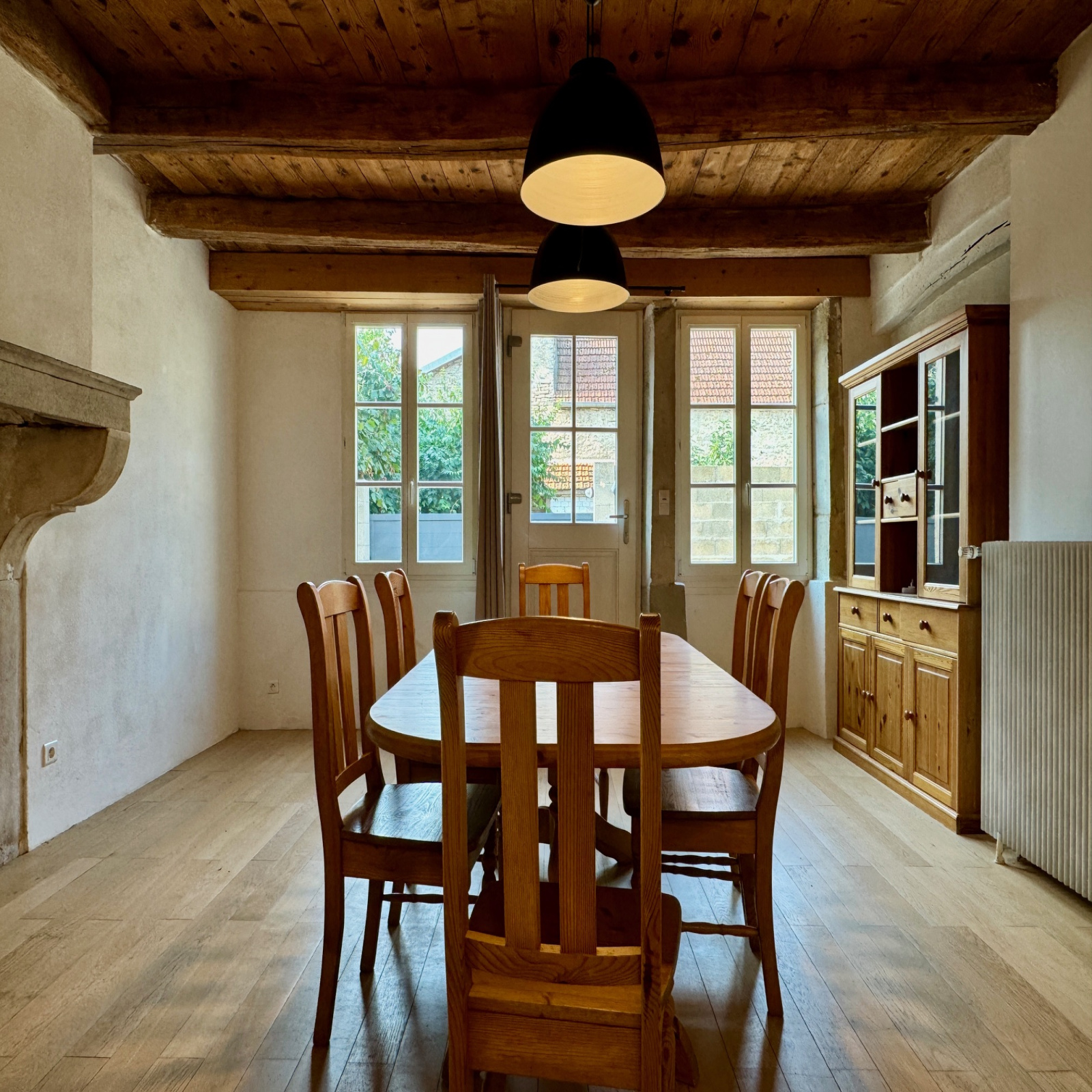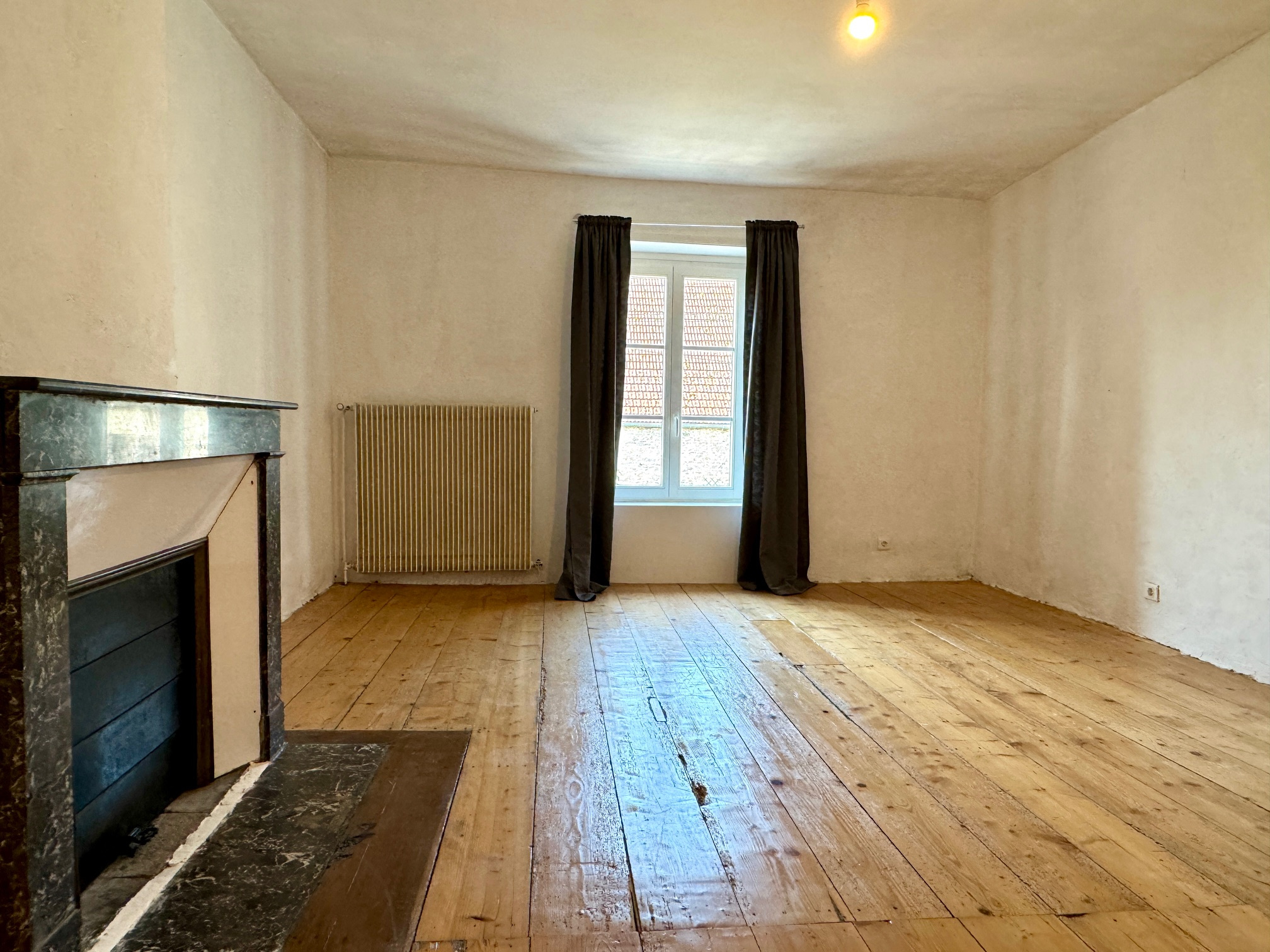 Le système de chauffage est quand a lui composé d'un insert bois et d'un chauffage central fioul.