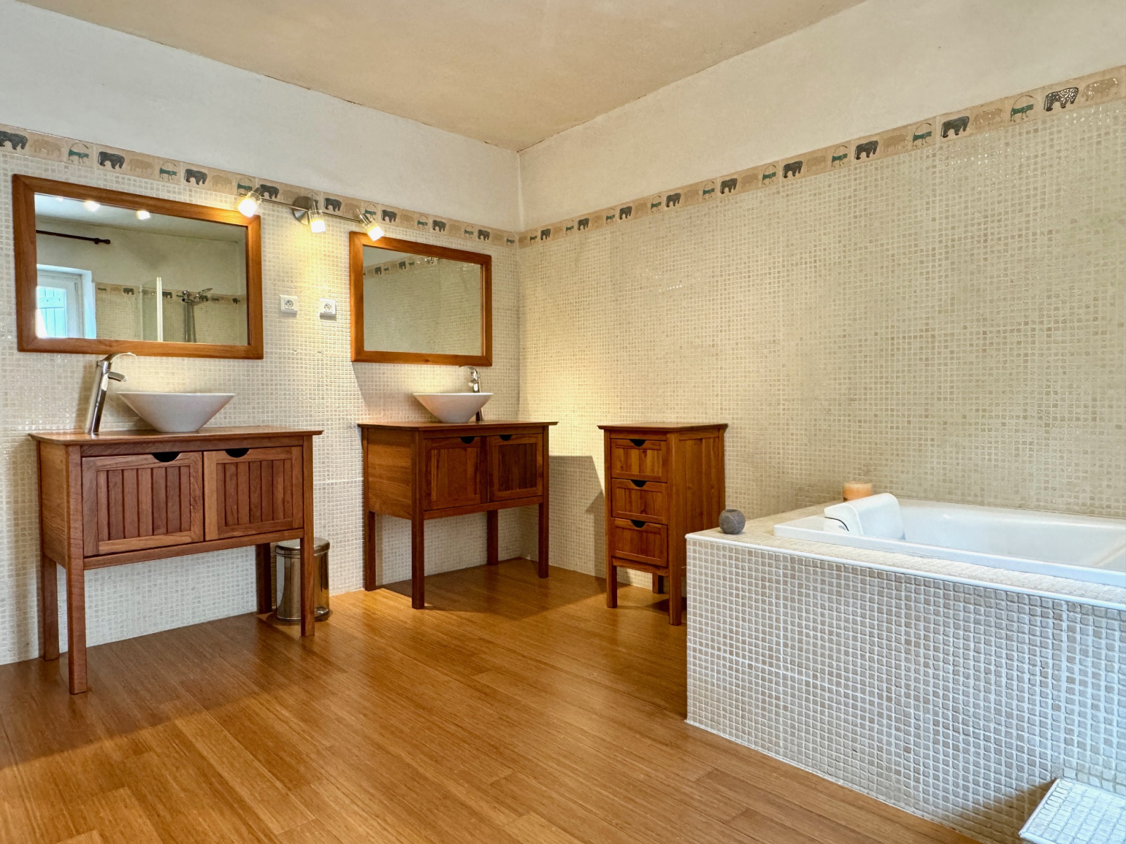A l'étage vous retouverez 4 belles chambres (24 m², 22 m², 25 m², 13 m²), une salle de bains spacieuse avec meuble double vasque, wc.