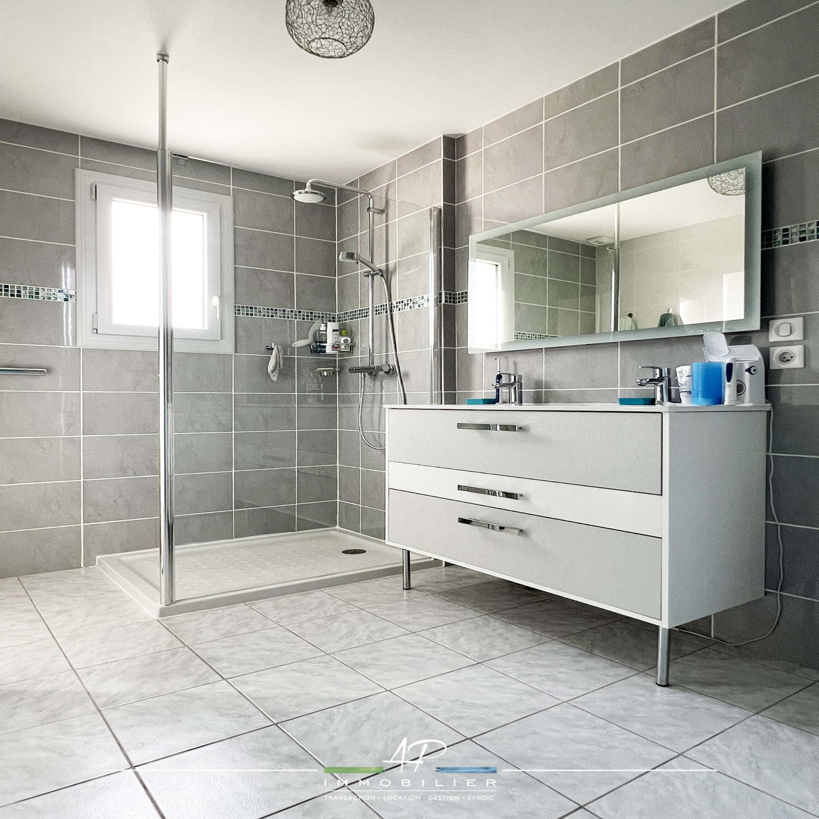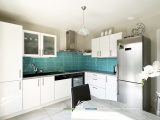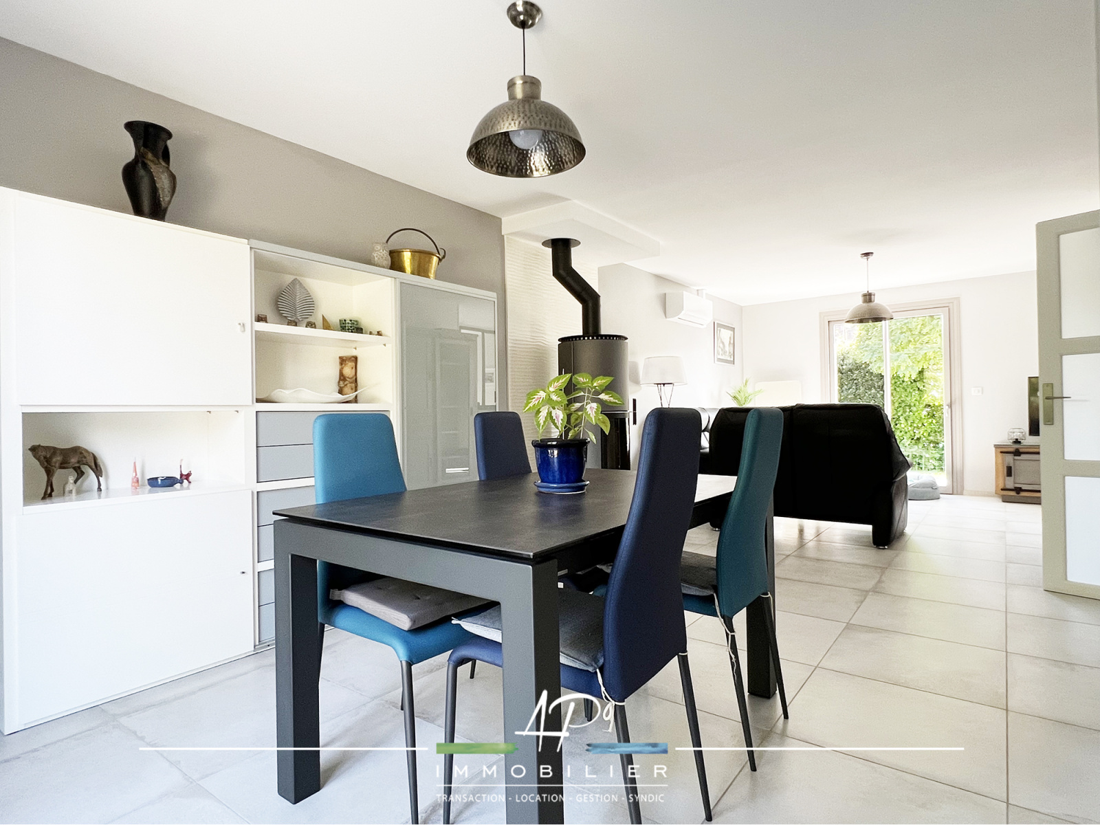 Depuis le séjour et la cuisine, vous accédez à une belle terrasse exposée plein sud (avec stores bannes).