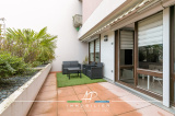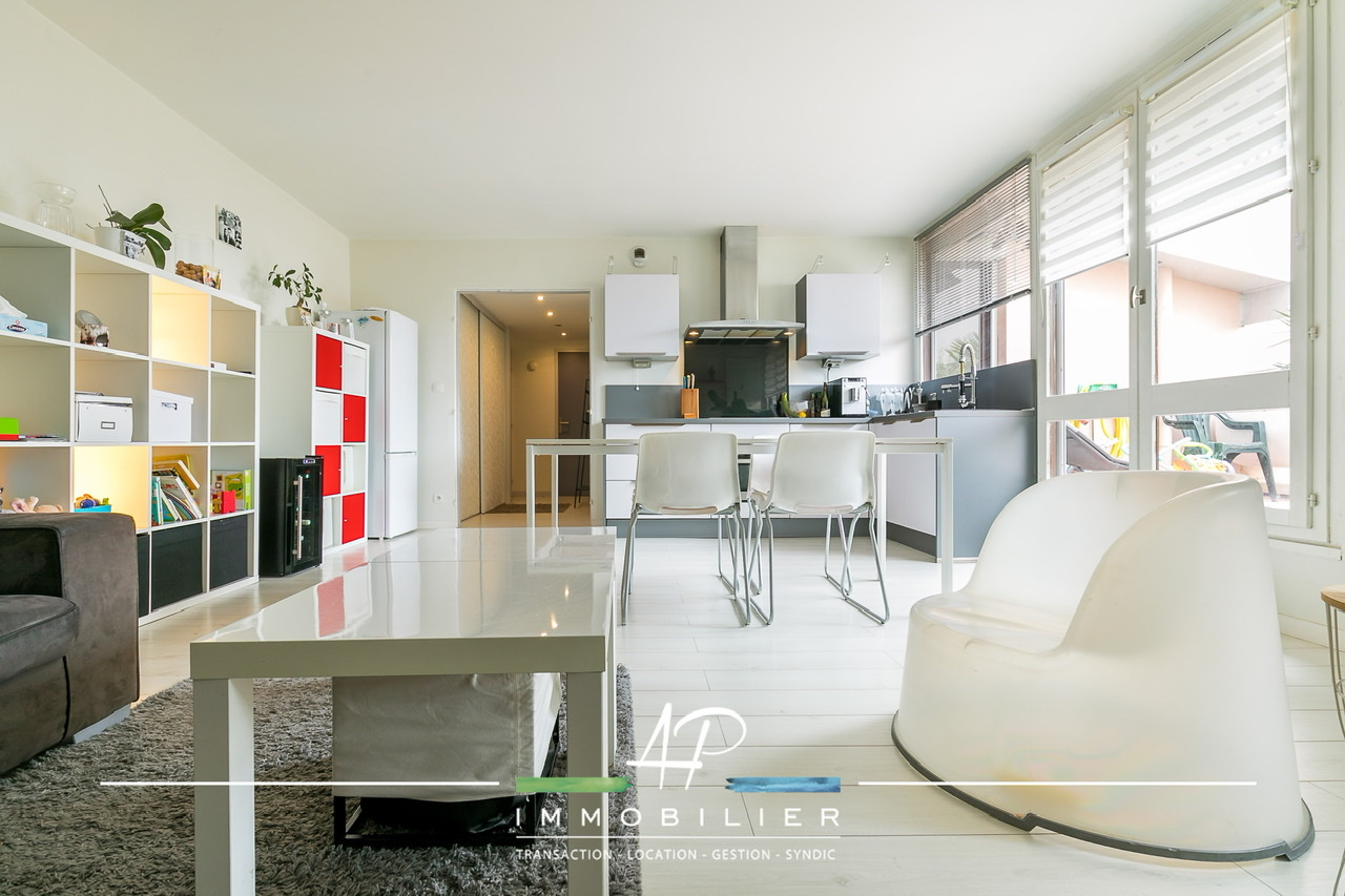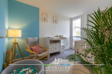 Il est composé d' une agréable pièce de vie lumineuse avec cuisine ouverte et équipée, donnant accès sur une grande terrasse exposée ouest de plus de 17m² avec vue dégagée et arborée.