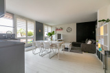 Il est composé d' une agréable pièce de vie lumineuse avec cuisine ouverte et équipée, donnant accès sur une grande terrasse exposée ouest de plus de 17m² avec vue dégagée et arborée.