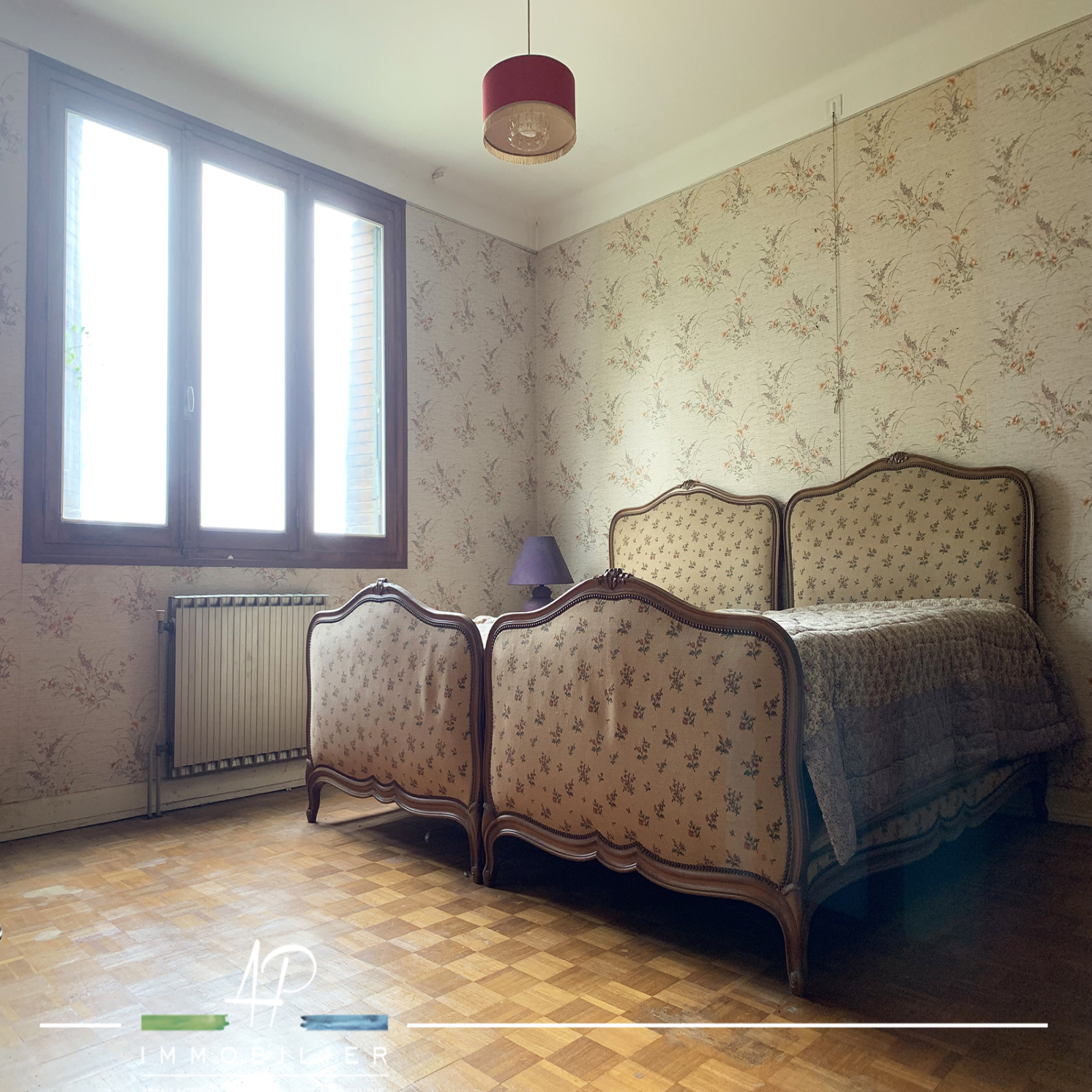 - A l'étage : un hall, une cuisine séparée (13m2), un salon/séjour (31m2) donnant sur un balcon (11m2), un couloir aménagé de placards muraux desservant 2 grandes chambres (13 et 16 m2), une salle de bains et un wc