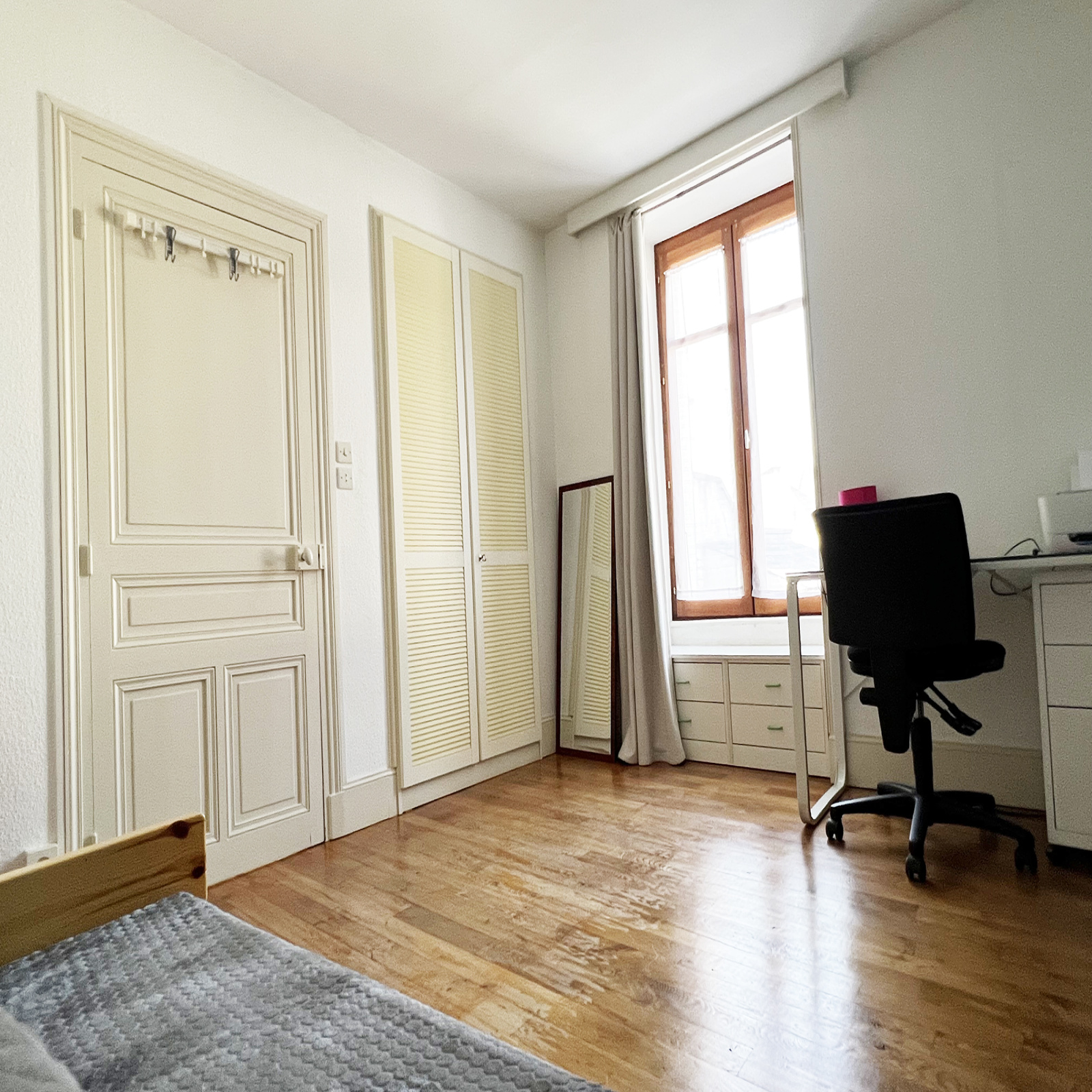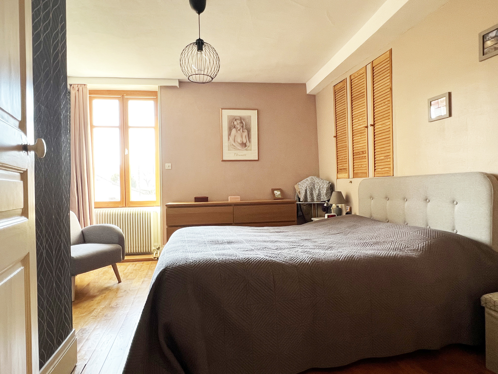Vous rejoignez l’étage par un escalier en bois. Le palier dessert deux chambres (11,50m2 et 12m2).
