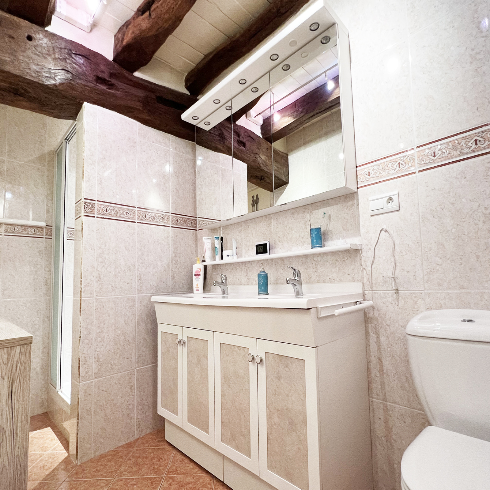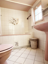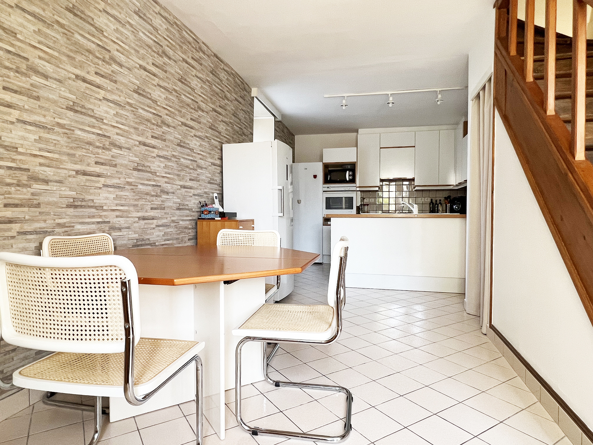 A l'entrée de la maison, au rez-de-chaussée, une verrière vous conduit vers une cuisine spacieuse (25m2), vous trouverez également un salon/séjour (28m2), une salle de bains avec WC, une salle d’eau avec WC et une chaufferie/cellier.