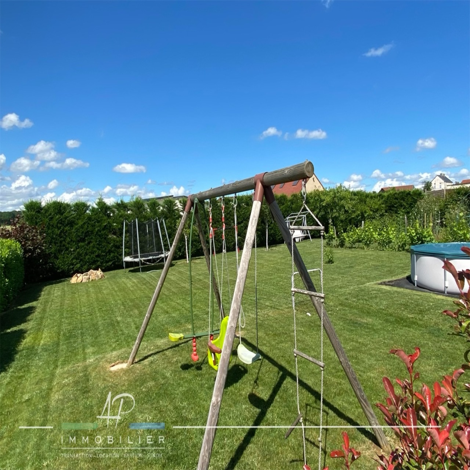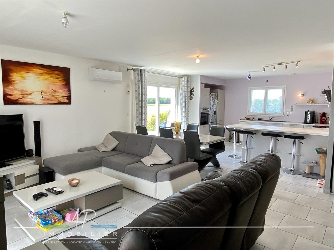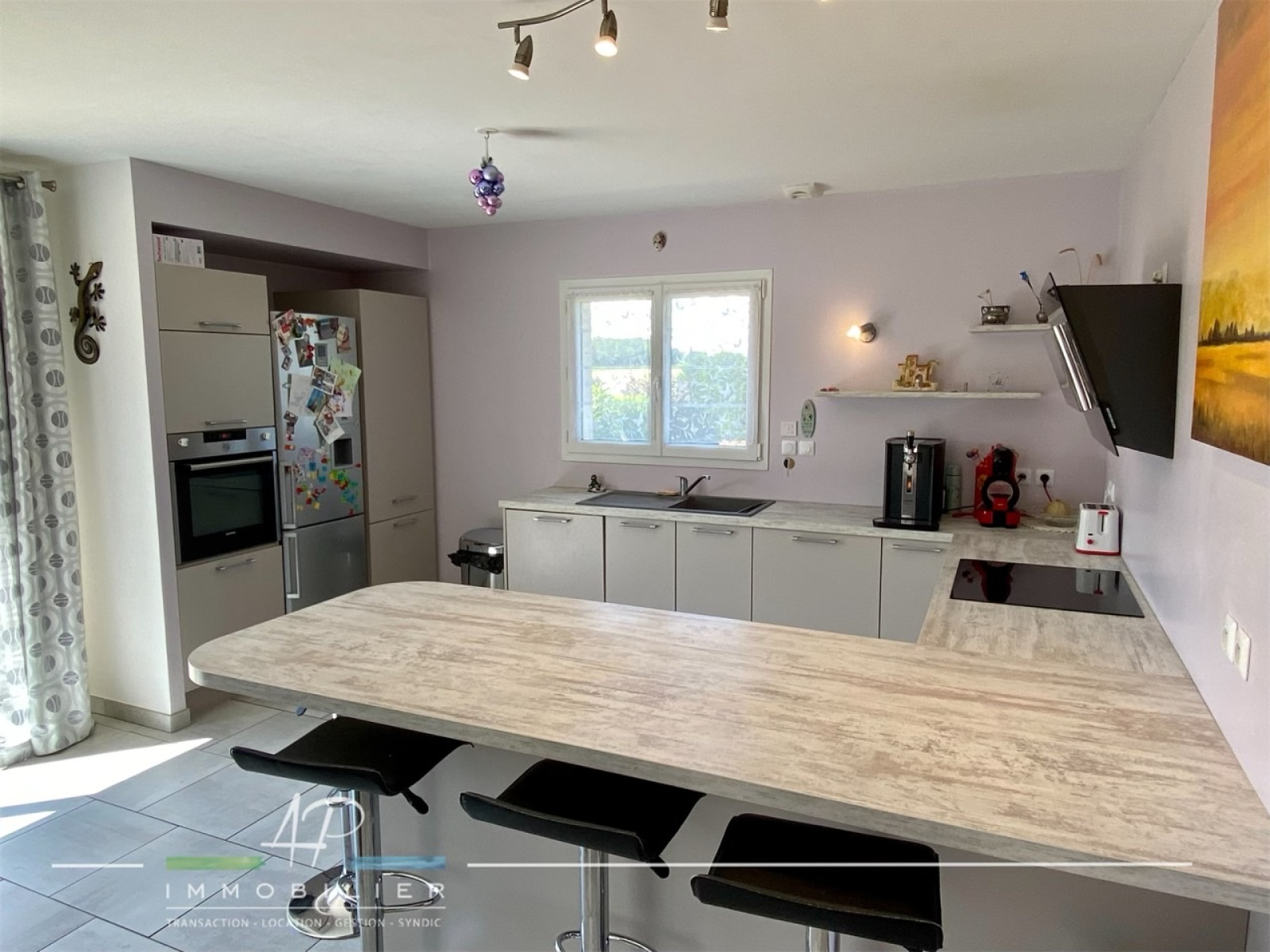 Le bien dispose d'un salon/séjour ouvert sur une cuisine équipée, 4 chambres, wc, salle de bains, garage et buanderie.