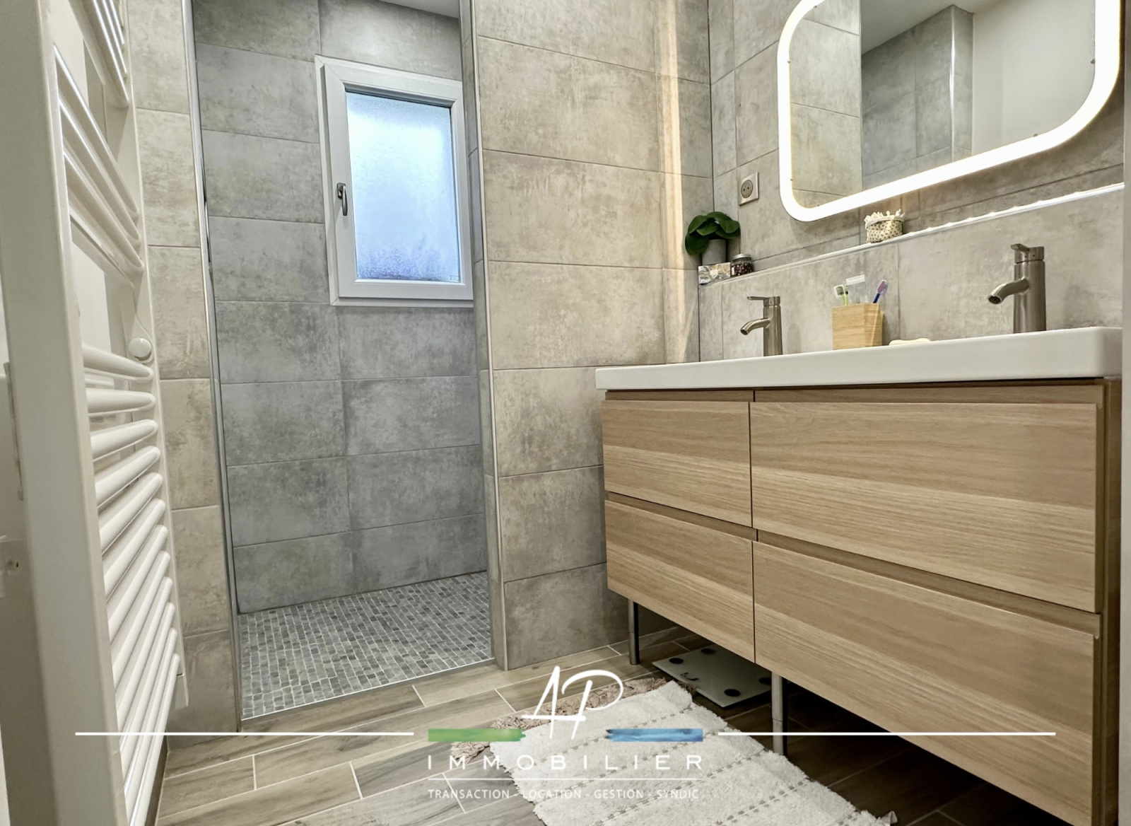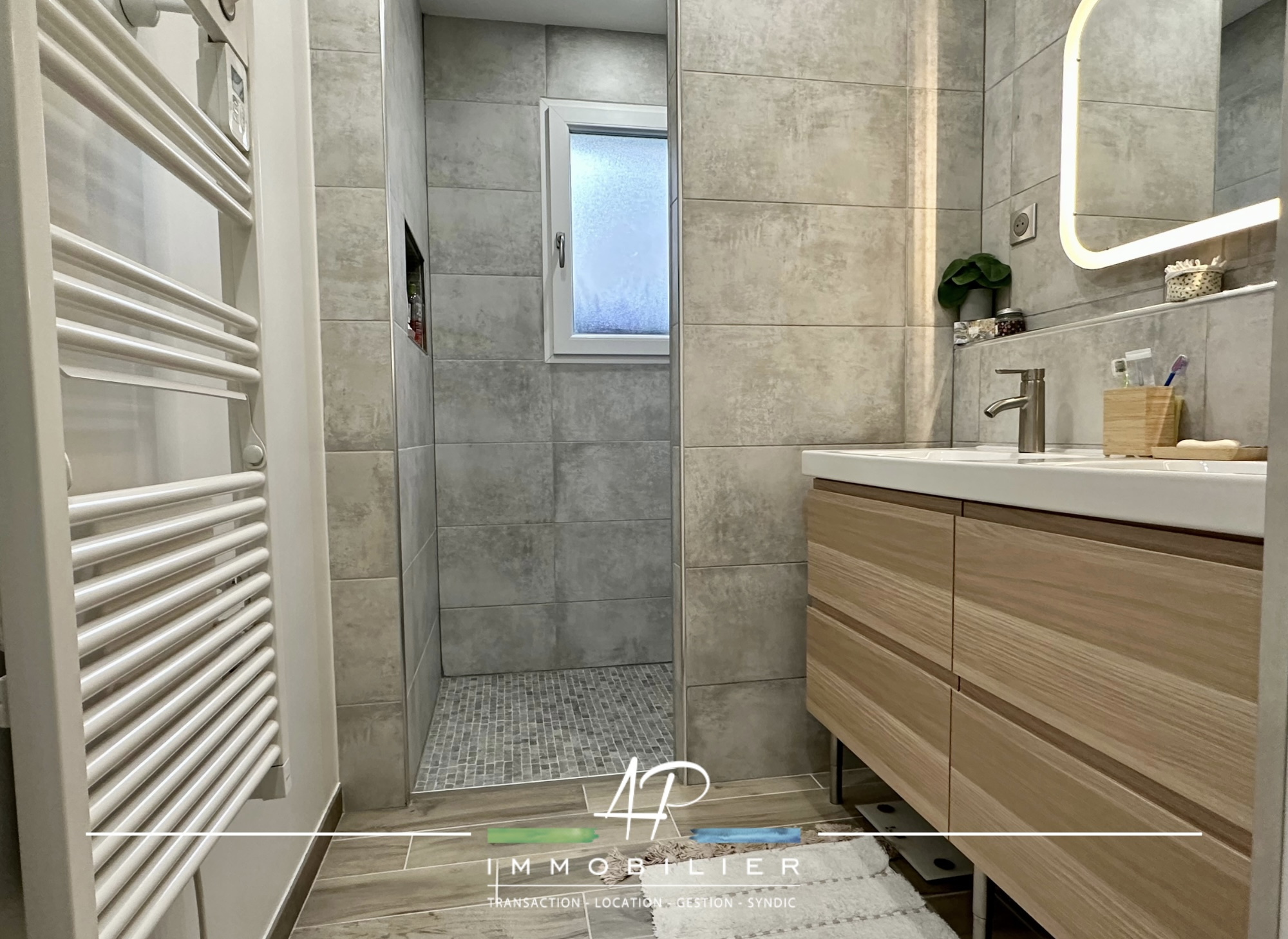 Il dispose au rez de chaussée d'une belle pièce de vie exposée sud et ouverte sur une cuisine équipée, de deux chambres, d'un wc et d'une salle d'eau neuve.
