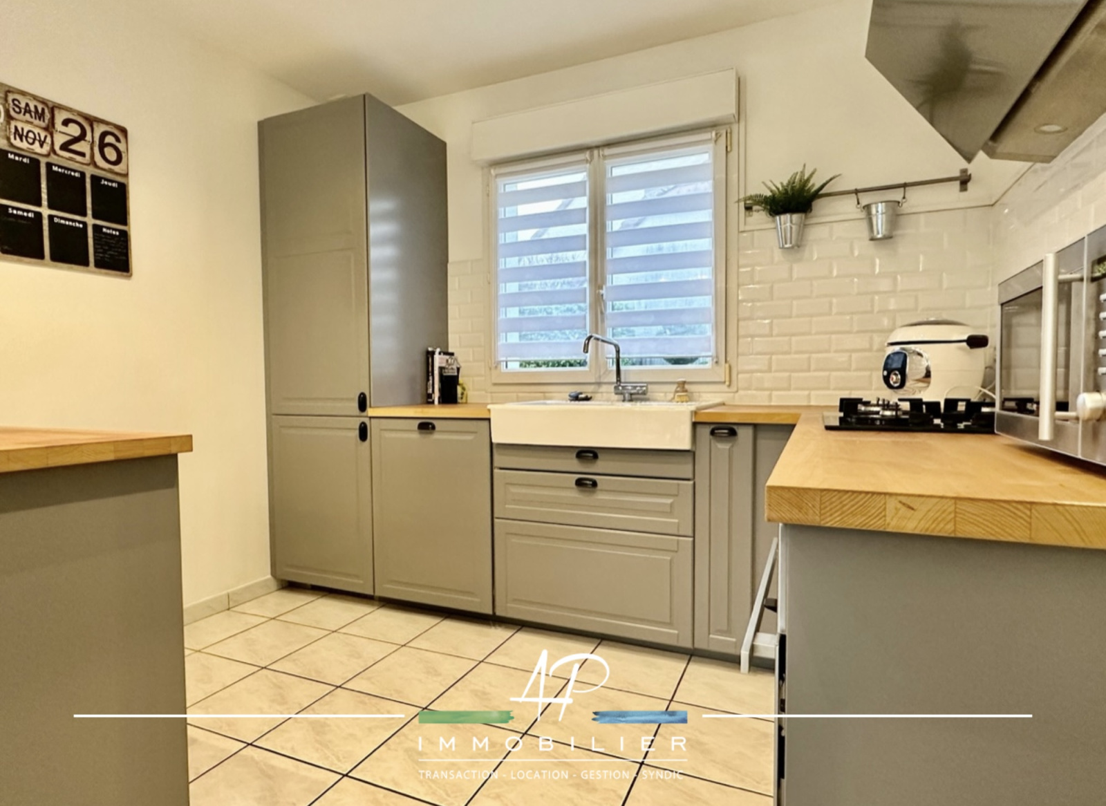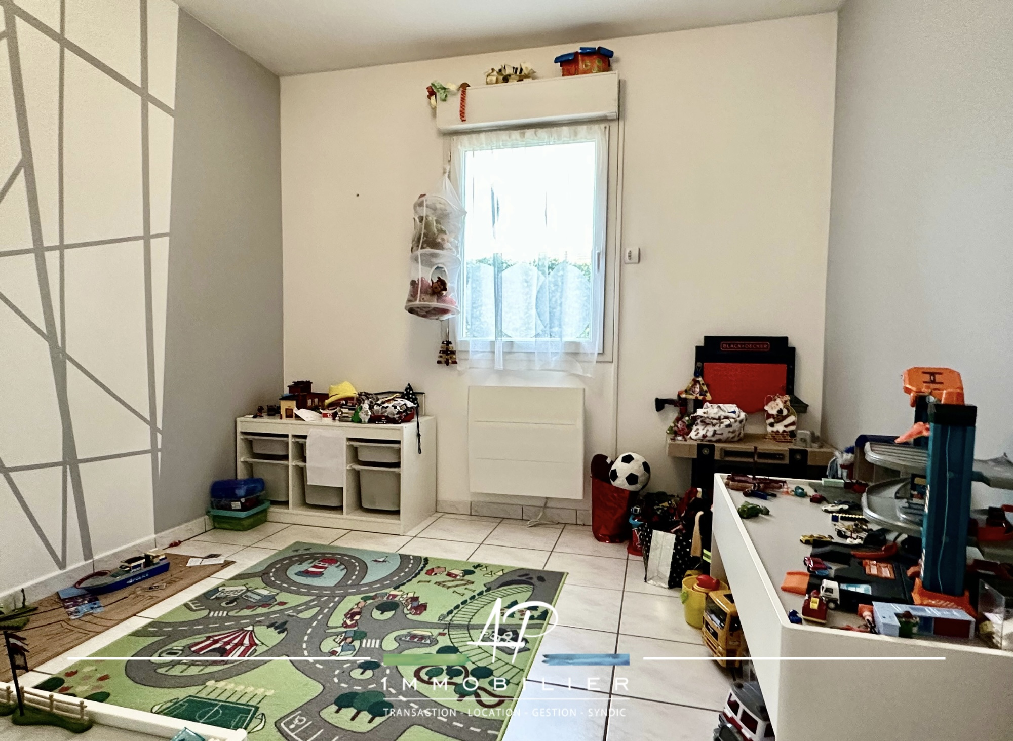 Le garage permet de stationner un véhicule, mais accueille également un espace buanderie.