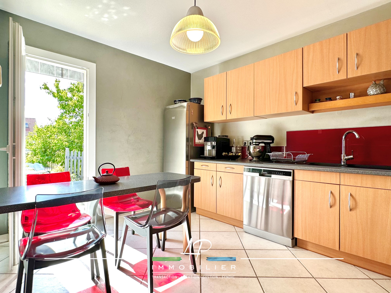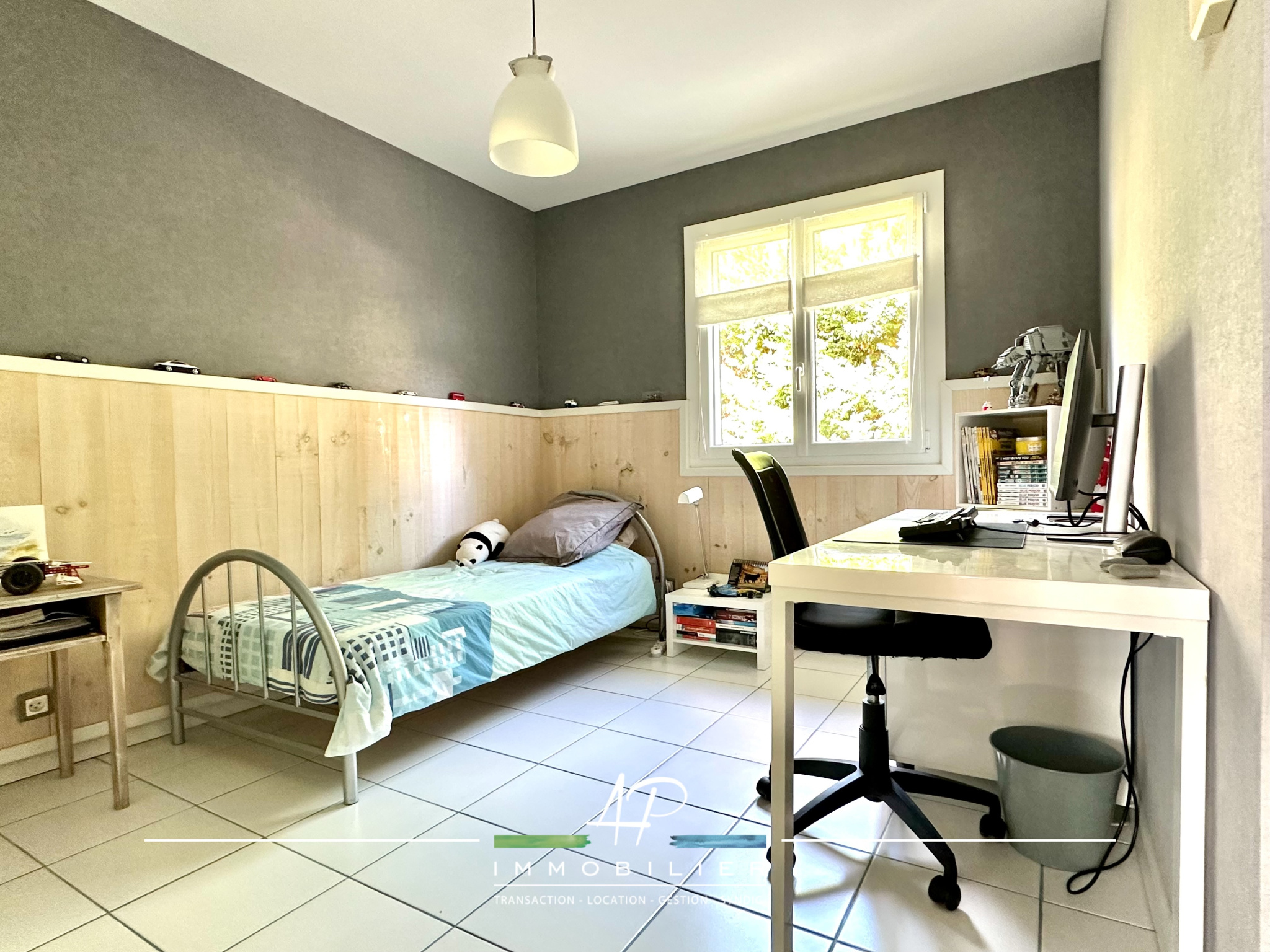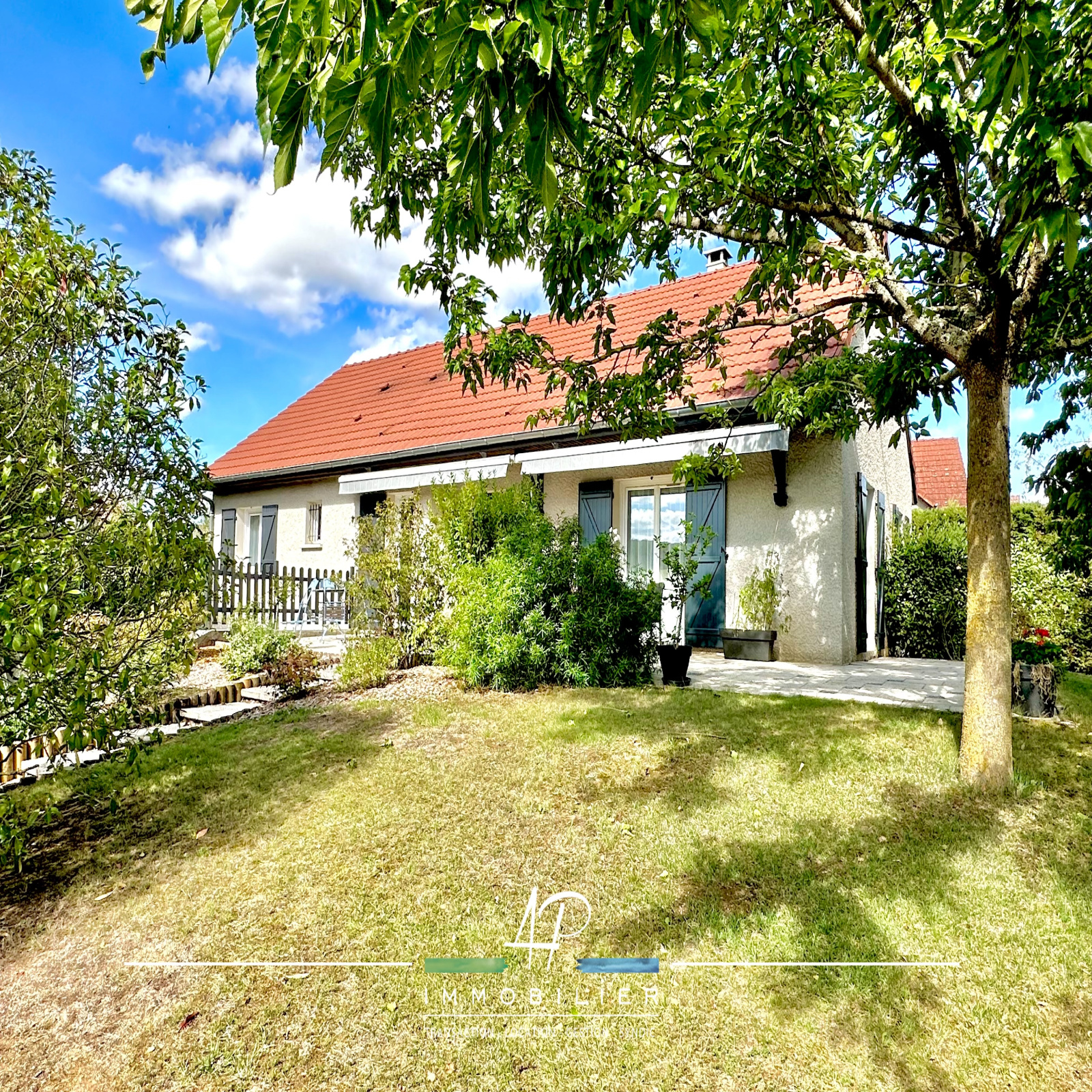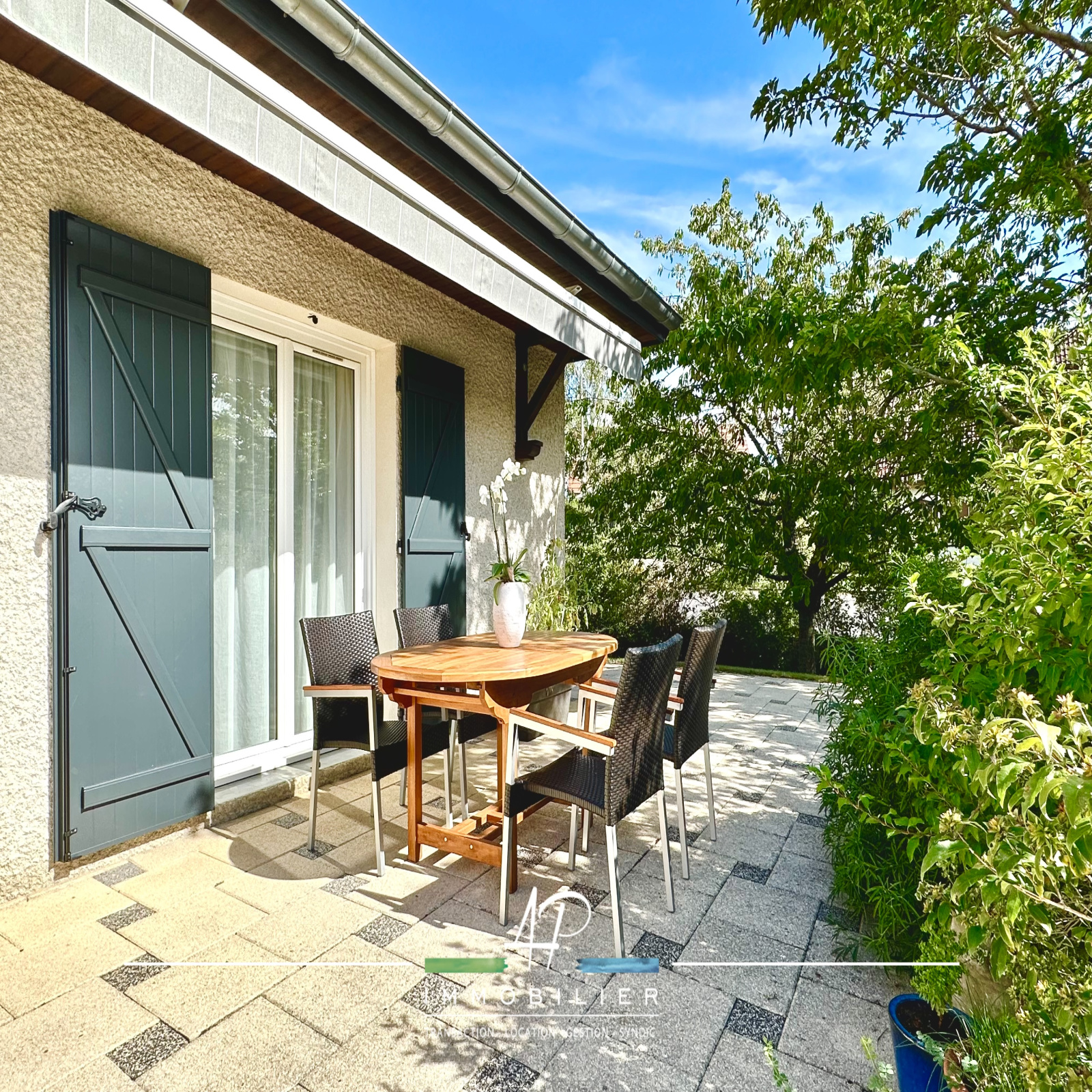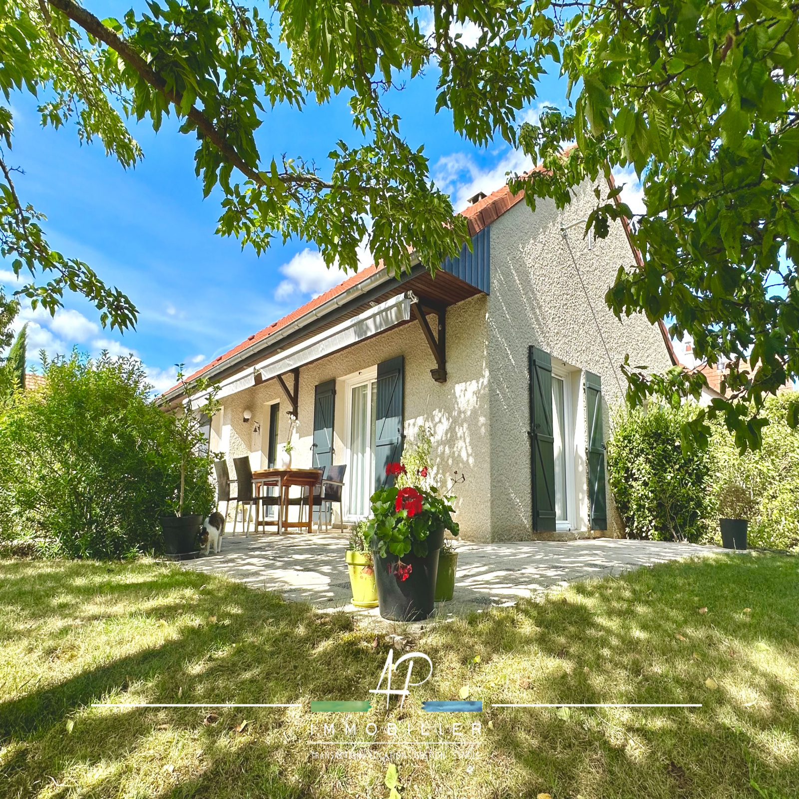 A l'exterieur, vous profiterez d'une grande terrasse accessible depuis la cuisine et le salon avec deux stores bannes. Le terrain de 736m² joliment arboré et bien exposé pourra éventuellement accueillir une piscine.
