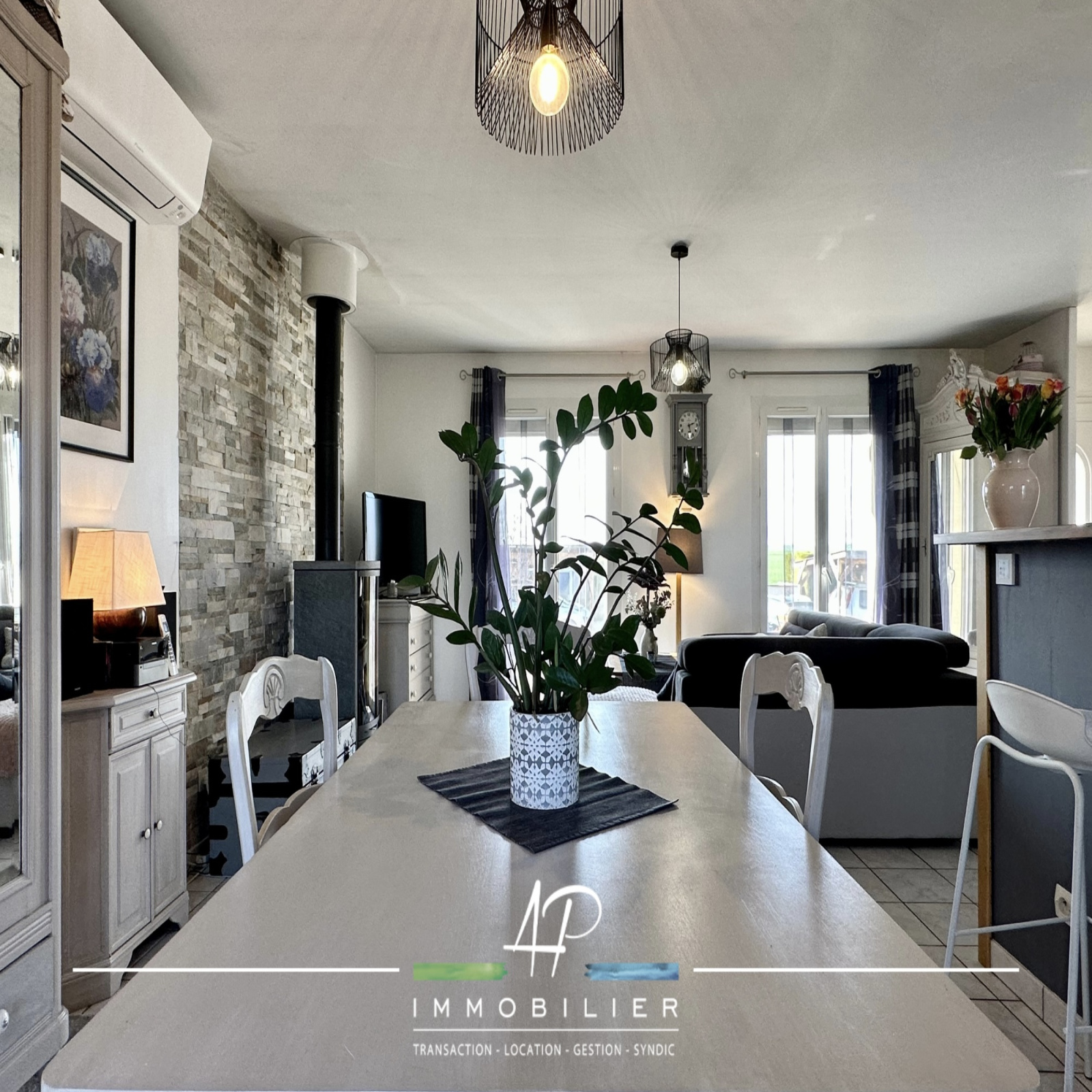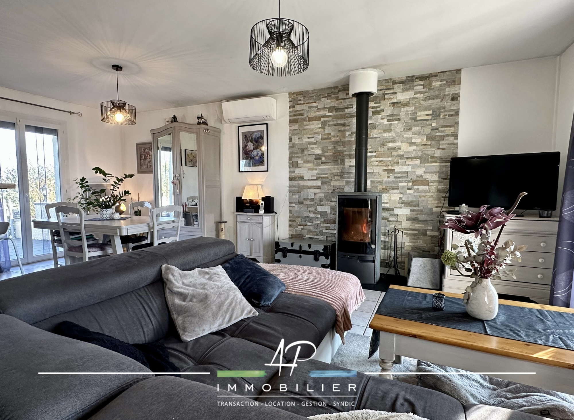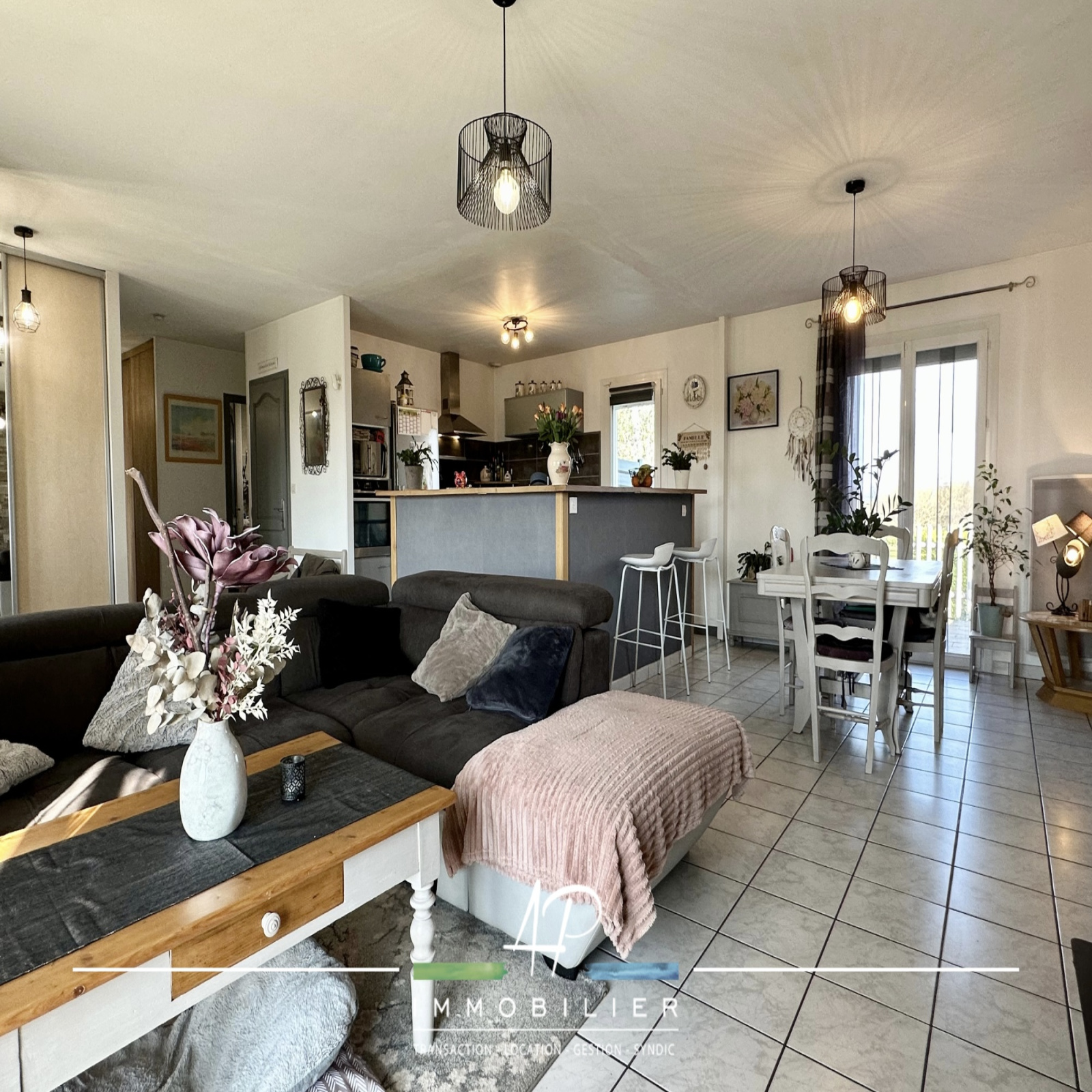 Vous retrouverez à l'intérieur une cuisine équipée ouverte sur la pièce de vie, wc, salle de bains et salle de douche, 3 chambres.