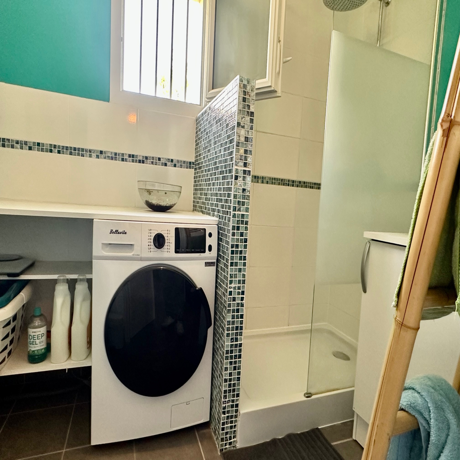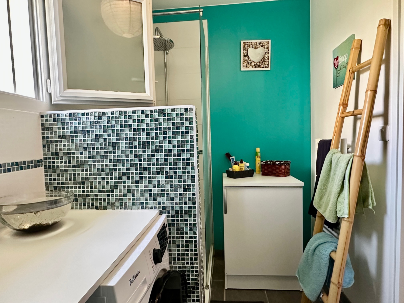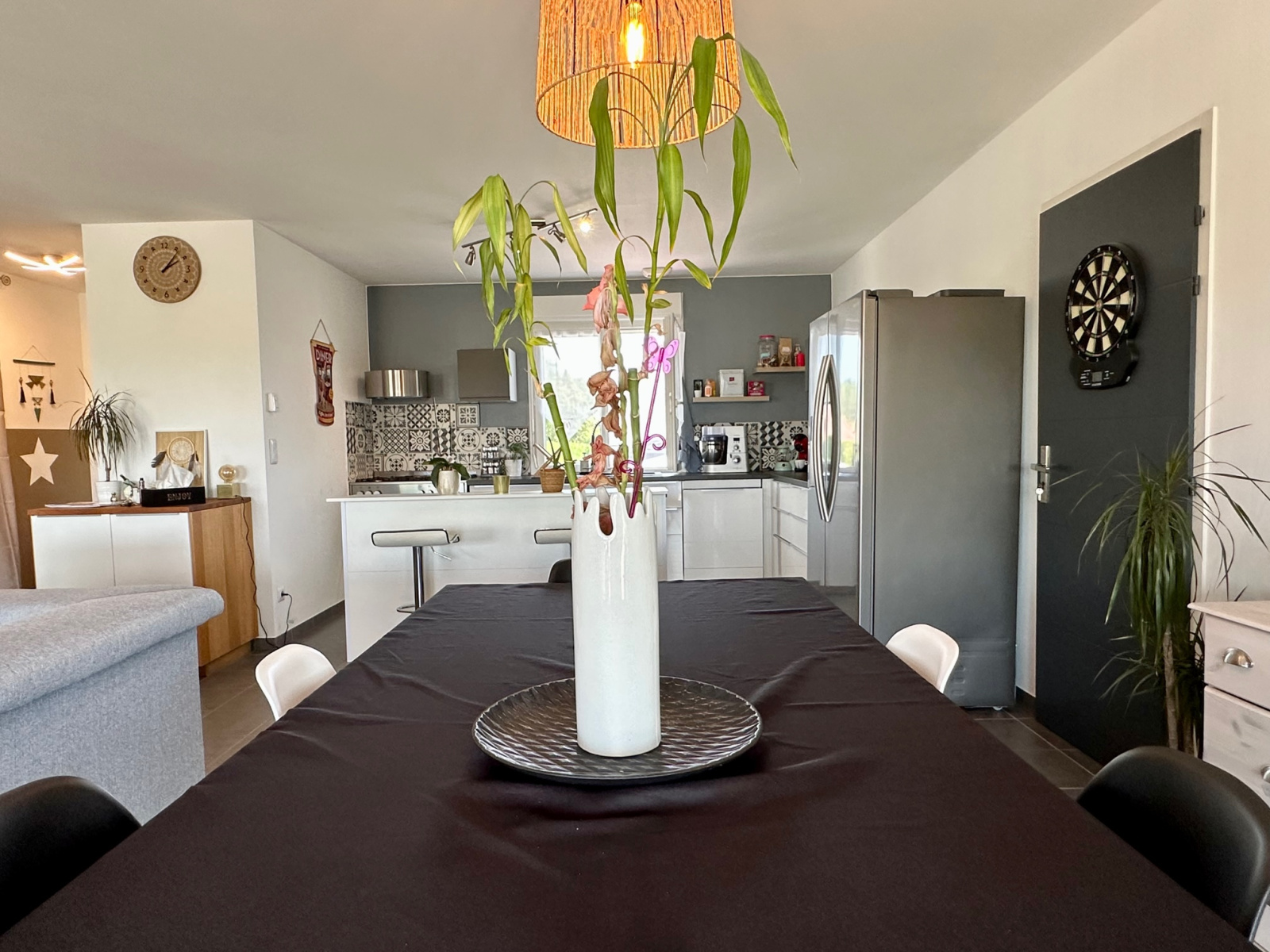 Elle dispose d'une superbe pièce de vie donnant sur une terrasse exposée OUEST, d'une cuisine équipée ouverte, de 4 chambres dont une suite parentale (douche et meuble vasque), d'une salle de bains.