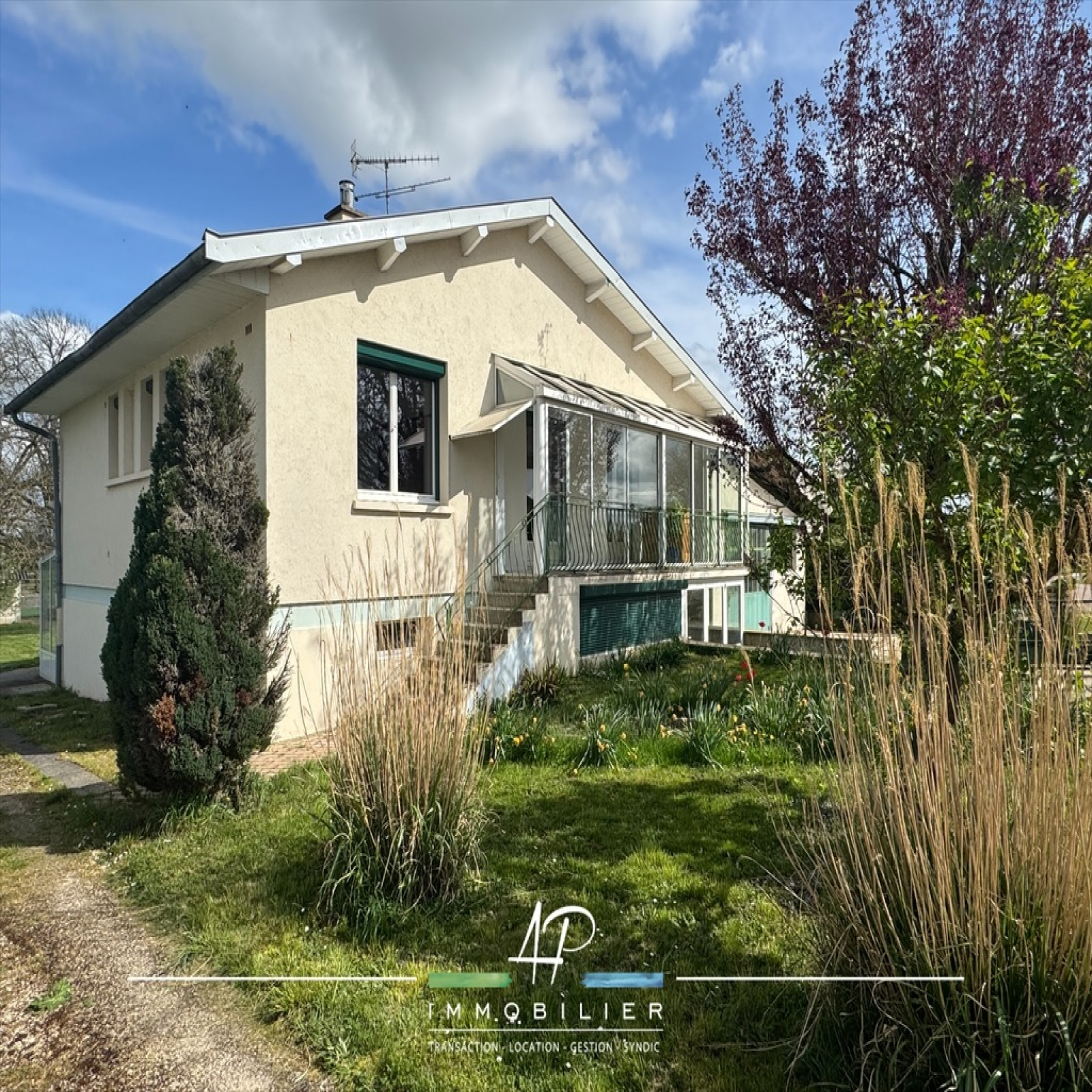 Elle est composée au rez de chaussée d'une jolie pièce de vie avec véranda, une cuisine équipée, une salle d'eau, un wc, 3 chambres.