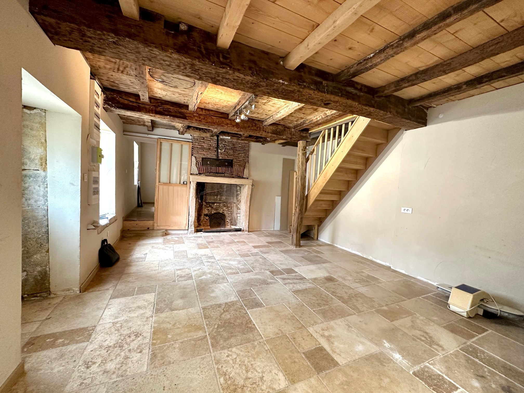 De nombreux travaux ont déja été effectués dans cette maison: toiture (1 ans environ), isolation des murs en mousse projetée, chauffage au sol au rez-de-chaussée avec carrelage en travertin, chaudière gaz à condensation de 2014, fenêtres PVC.