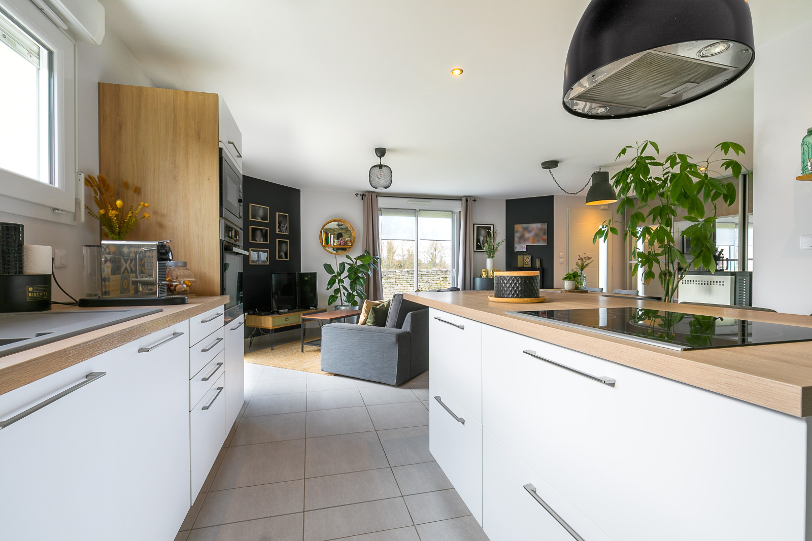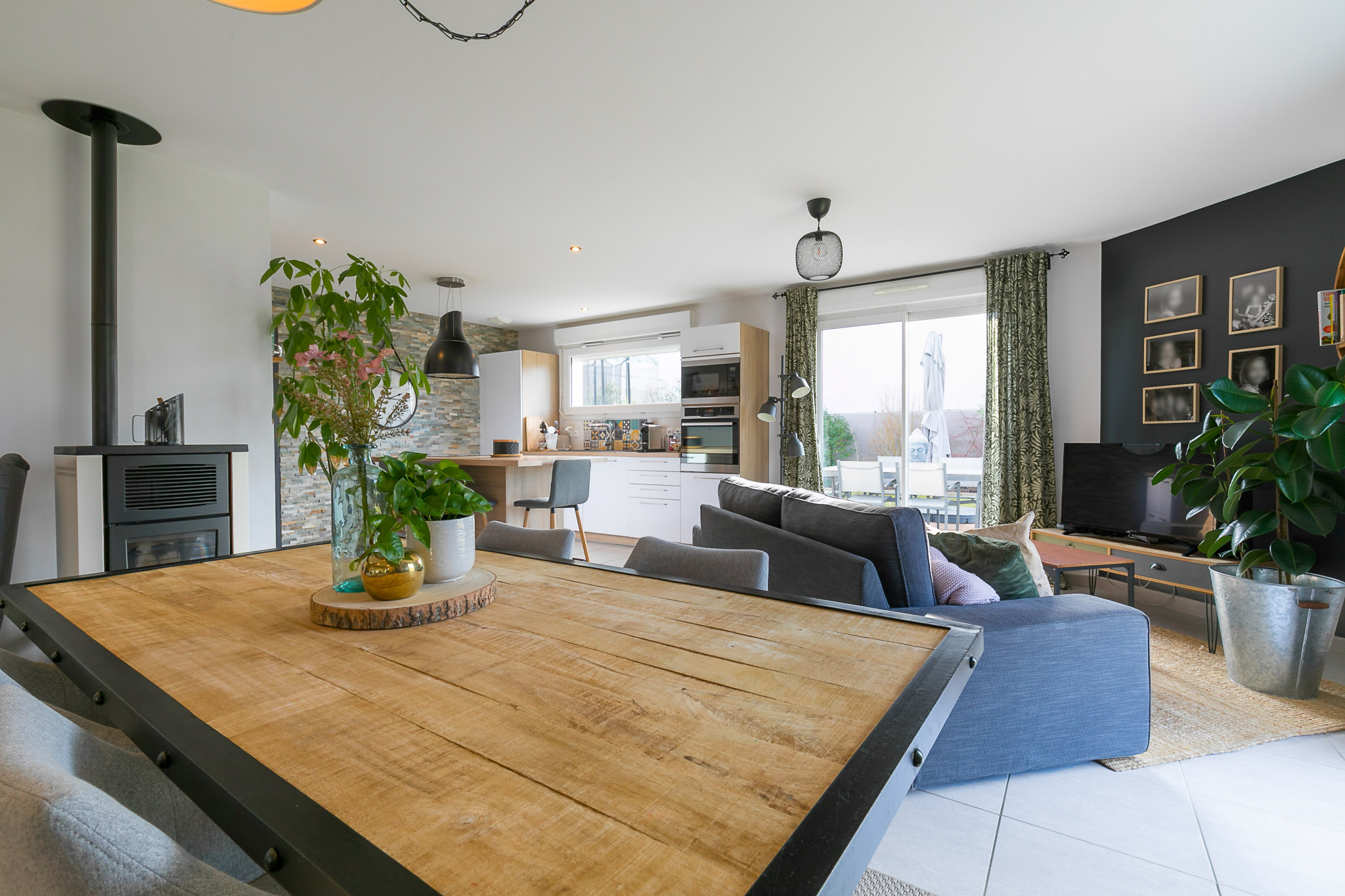 Dotée d'une pièce de vie lumineuse tournée vers la terrasse, de trois chambres avec placards, d'une salle de bains avec baignoire et d'un wc séparé, cette maison récente (2016) est très agréable à vivre et astucieusement agencée. La cuisine américaine aménagée et équipée, avec son ilôt, est également très appréciable. Un garage vient completer le bien. Côté technique, la maison est entièrement chauffée par un poêle à granulés (environ 600€/an), parfaitement isolée (RT2012) et dispose encore de 2 ans de garantie dommage ouvrage.