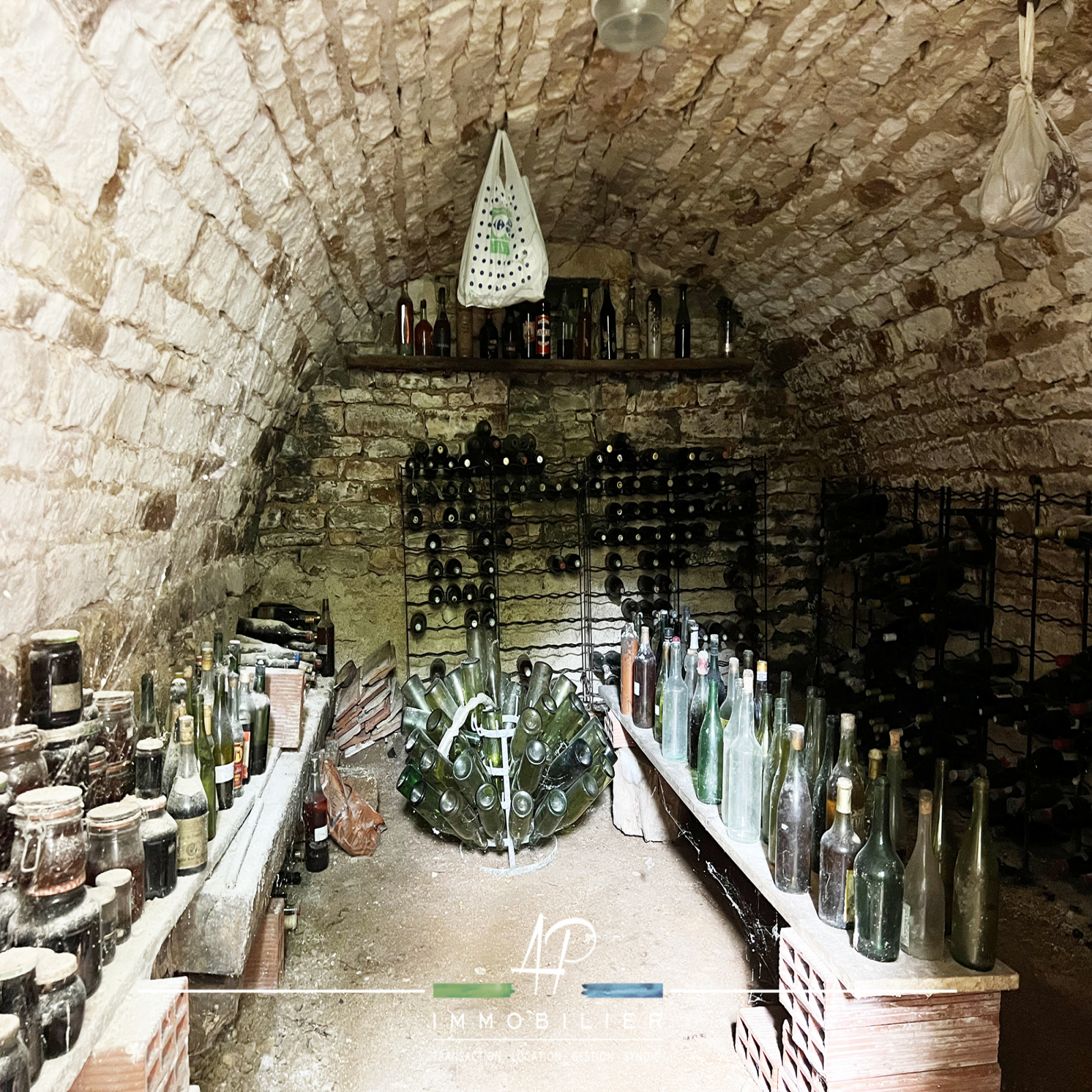 Sous la maison, deux grandes caves (15m2 chacune) : la première est accessible depuis le garage, la seconde depuis le jardin.