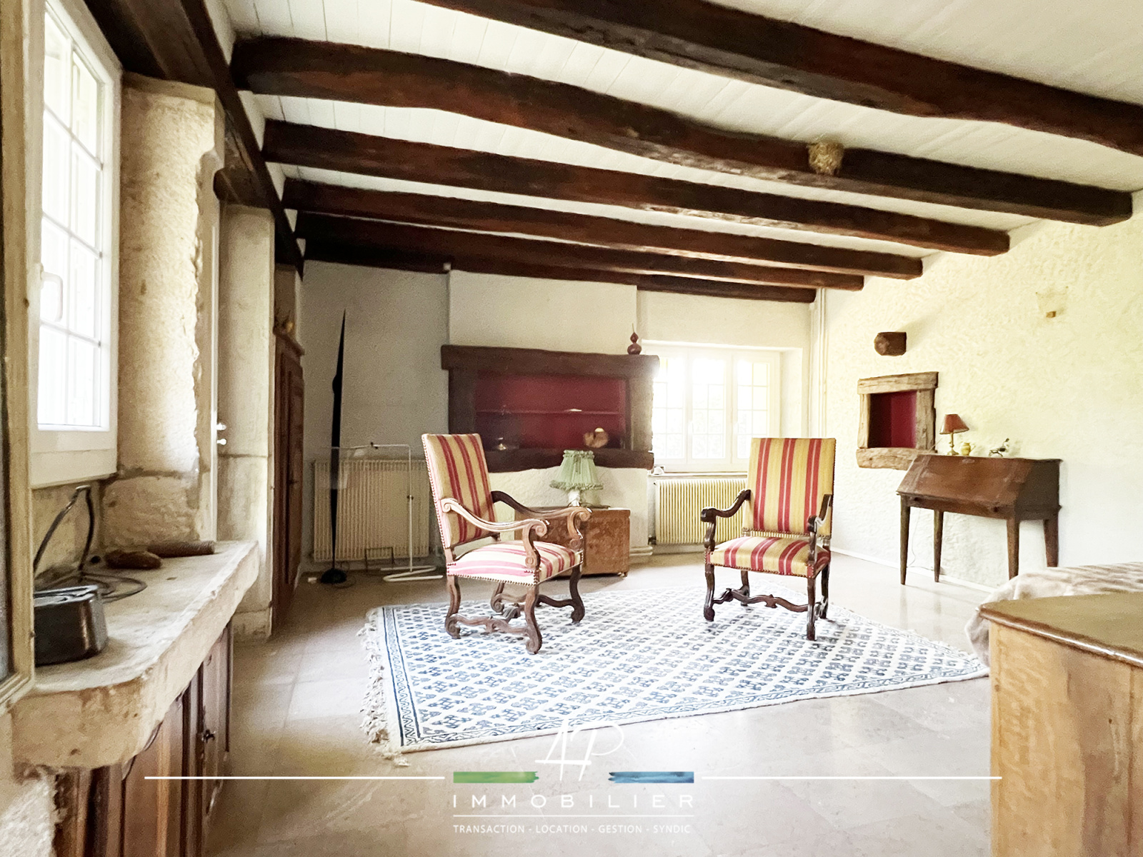 Pierres, poutres, anciennes portes : les amateurs seront conquis !! Les volumes des pièces vous permettront de laisser place à votre imagination pour son aménagement (disposition des pièces, possibilité d’extension de la surface habitable…).