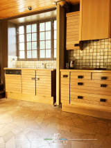 Le rez-de-chaussée se compose d’un salon, d’une salle à manger, d’une cuisine, d’une chambre, d’une spacieuse salle de bains avec douche, baignoire et wc, d’une grange (39m2) et d’un garage (15m2).