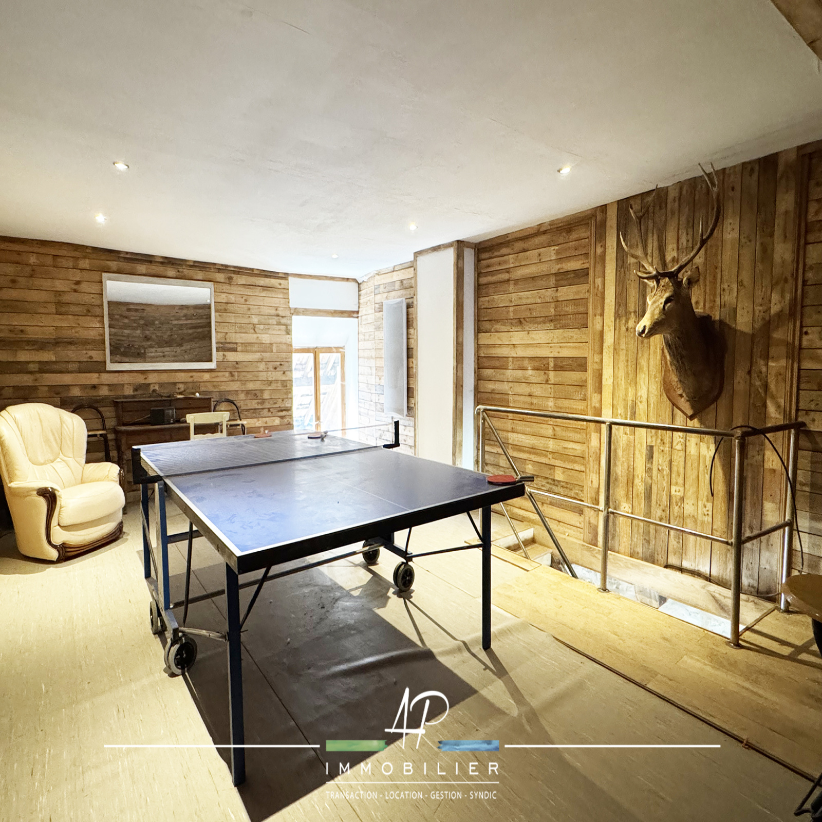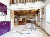 Elle se compose au rez-de-chaussée d’une pièce de vie de 60m2 avec cuisine aménagée, un salon (35m2), un séjour (35m2), une buanderie, une pièce annexe, une salle de bains, et WC séparé. A l’étage, une mezzanine, un dégagement, trois chambres et une grande pièce.