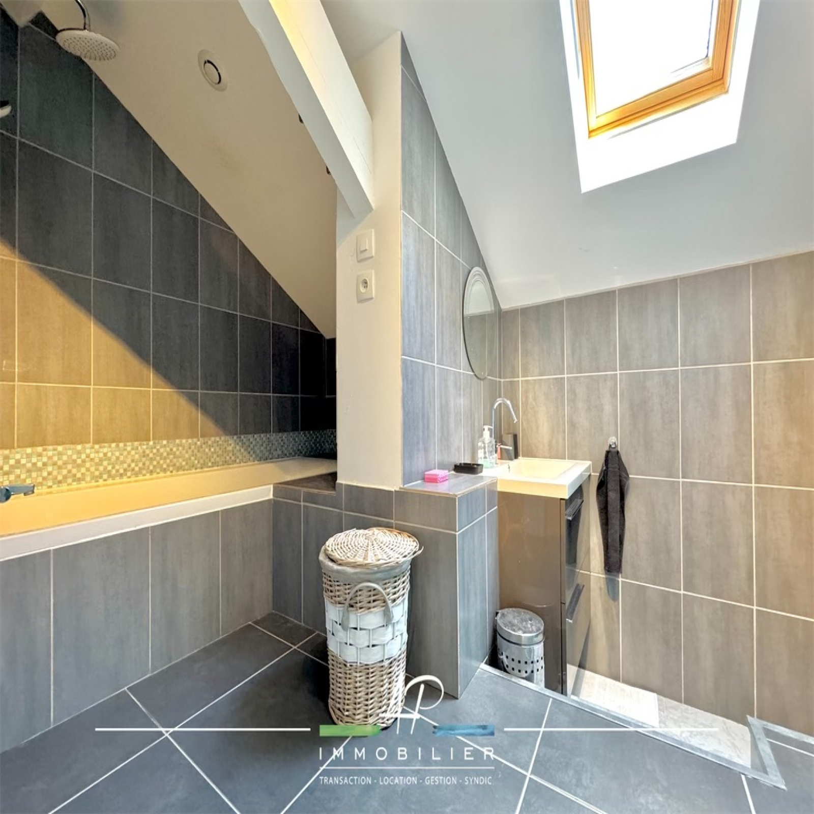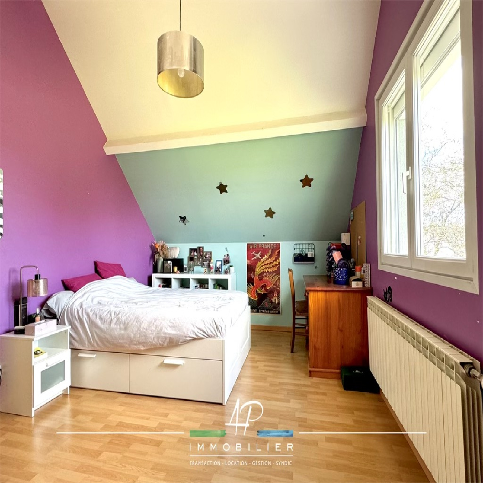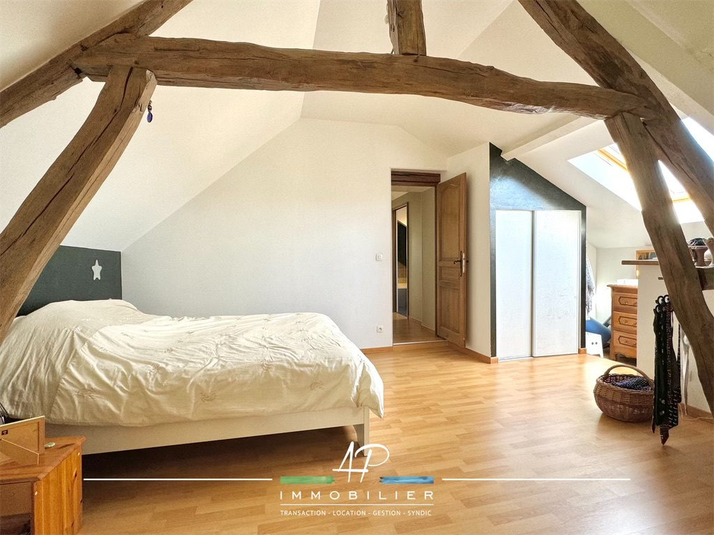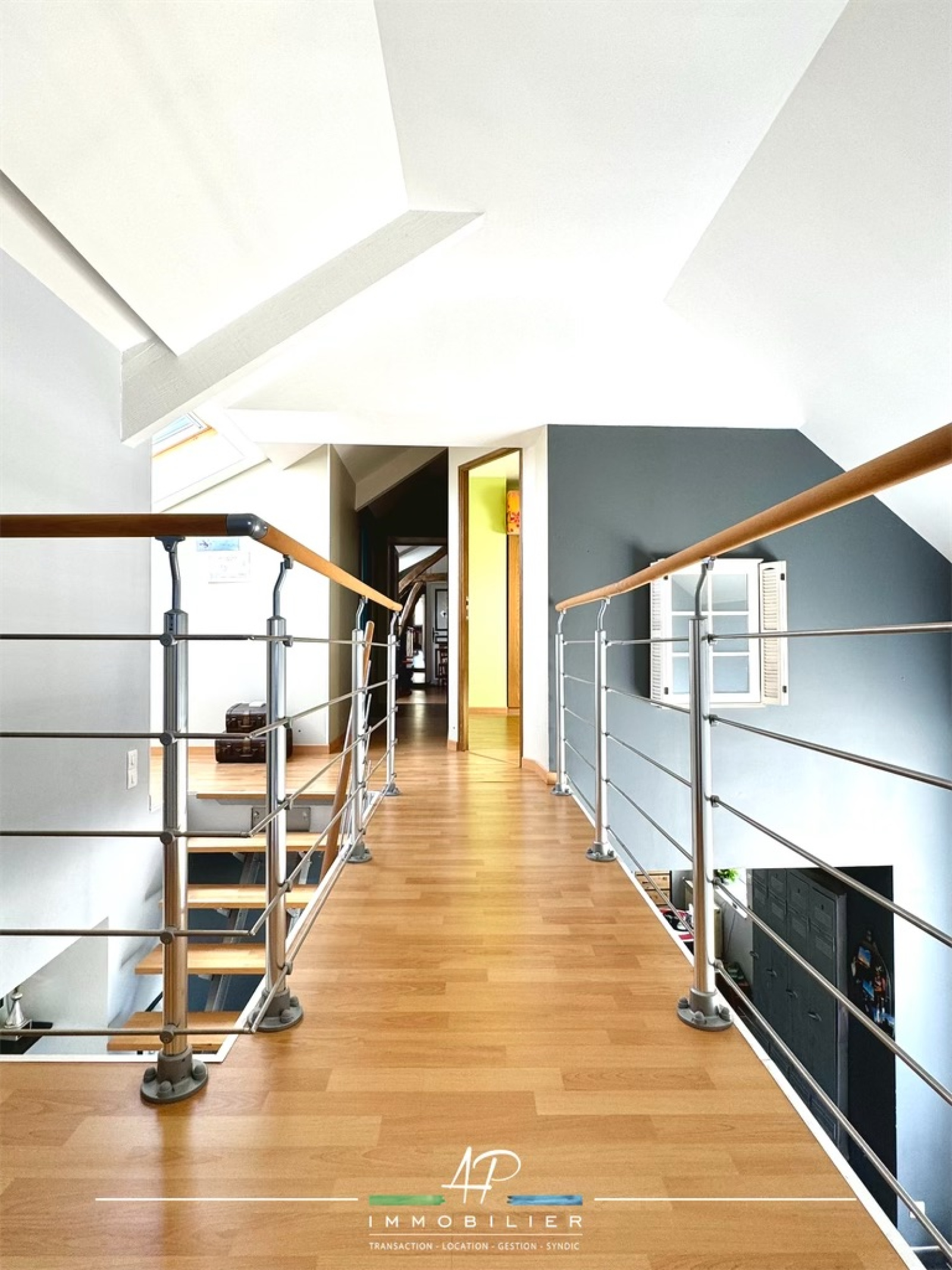 A l'étage, une passerelle avec vide sur séjour déssert avec style trois nouvelles chambres dont une sous poutraison apparente de toute beauté. Vous disposez également d'une salle de bains avec wc et de deux dressings.