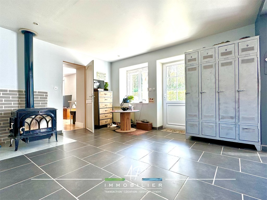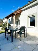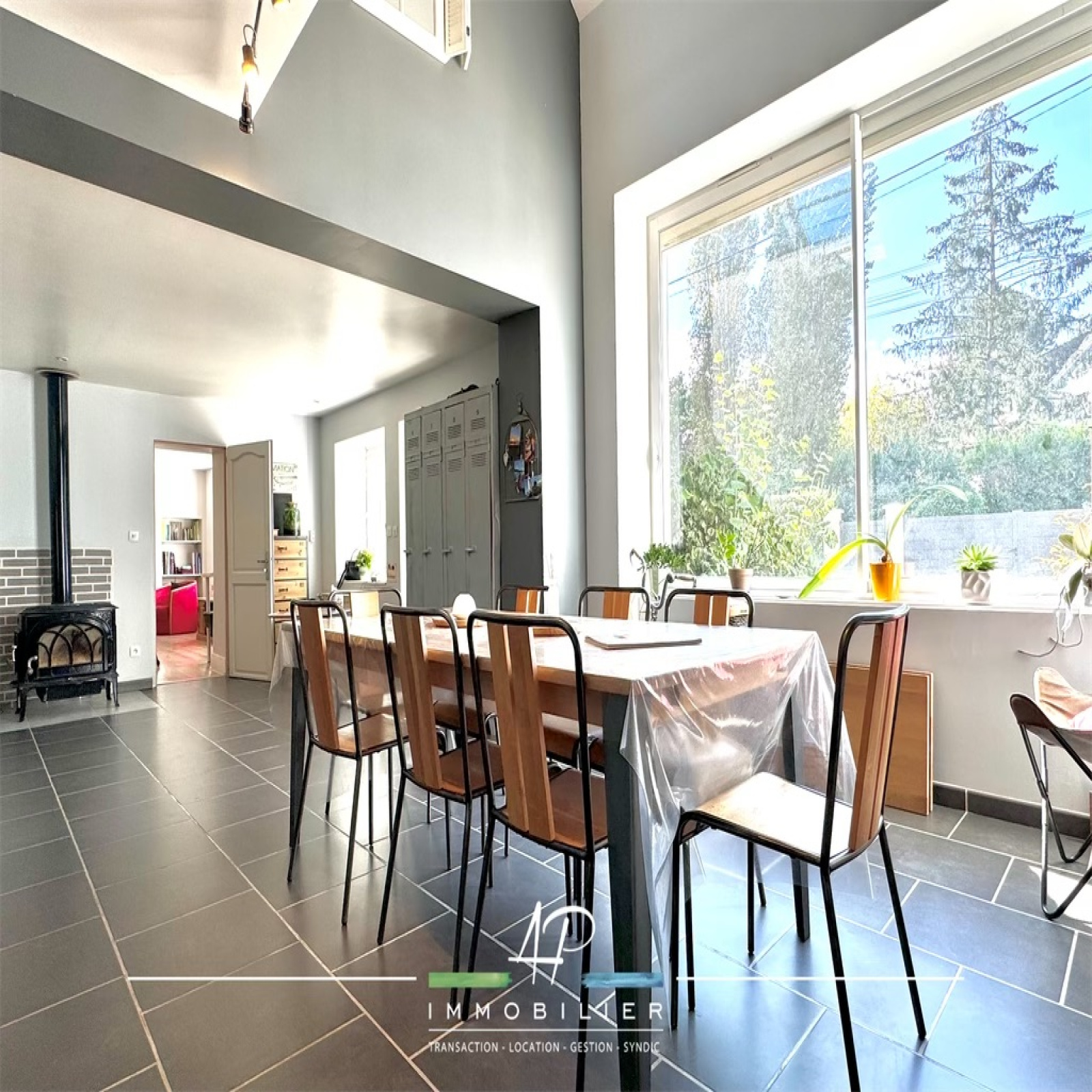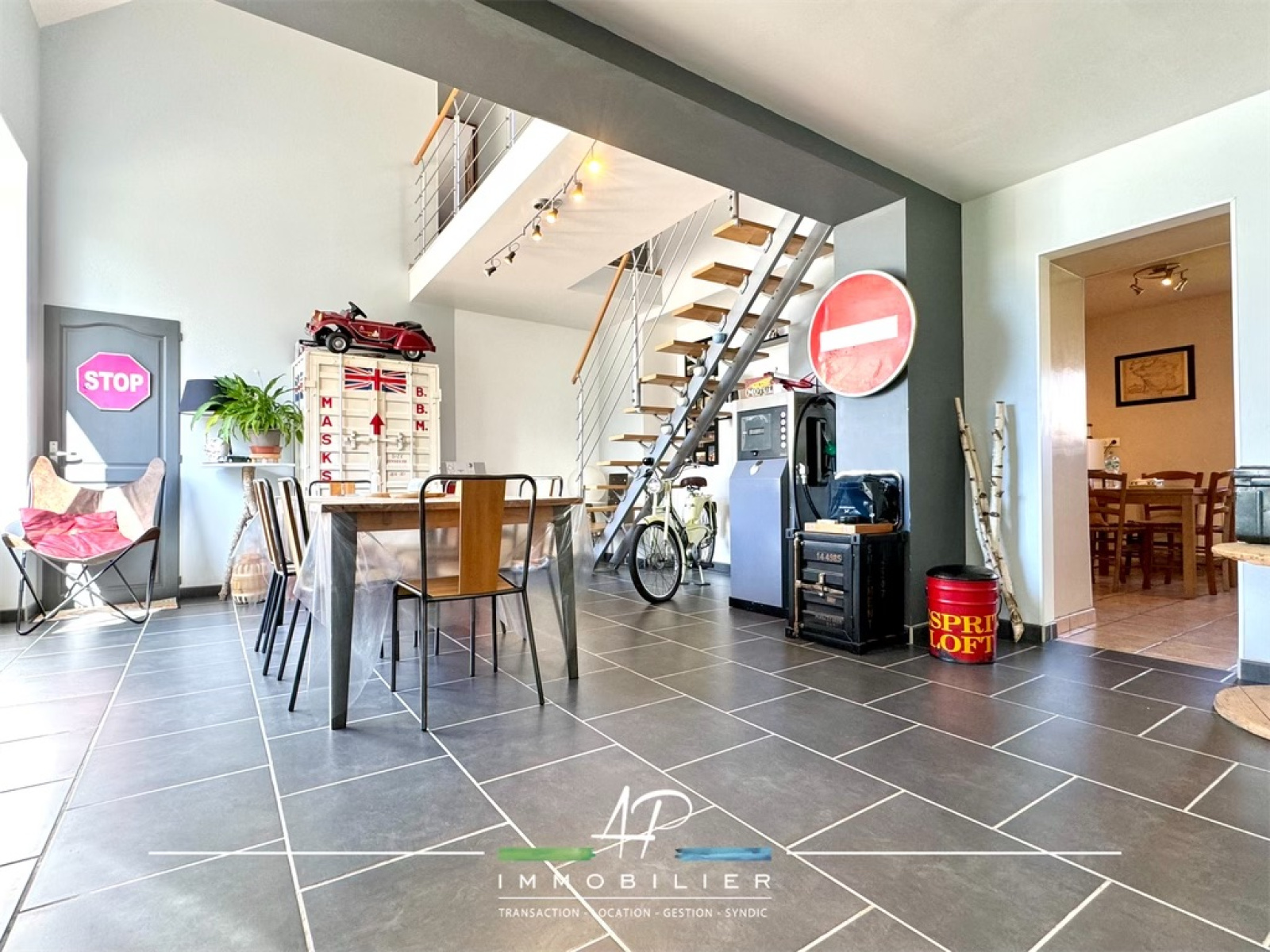 Vous entrez au rez-de-chaussée sur une grande salle à manger au style industriel avec poële à bois complétée par un salon d'environ 25m² et d'une cuisine dinatoire donnant sur une terrasse intime et sans vis à vis côté Est. Une chambre avec accès direct sur le jardin, une salle d'eau et un wc complètent ce niveau.