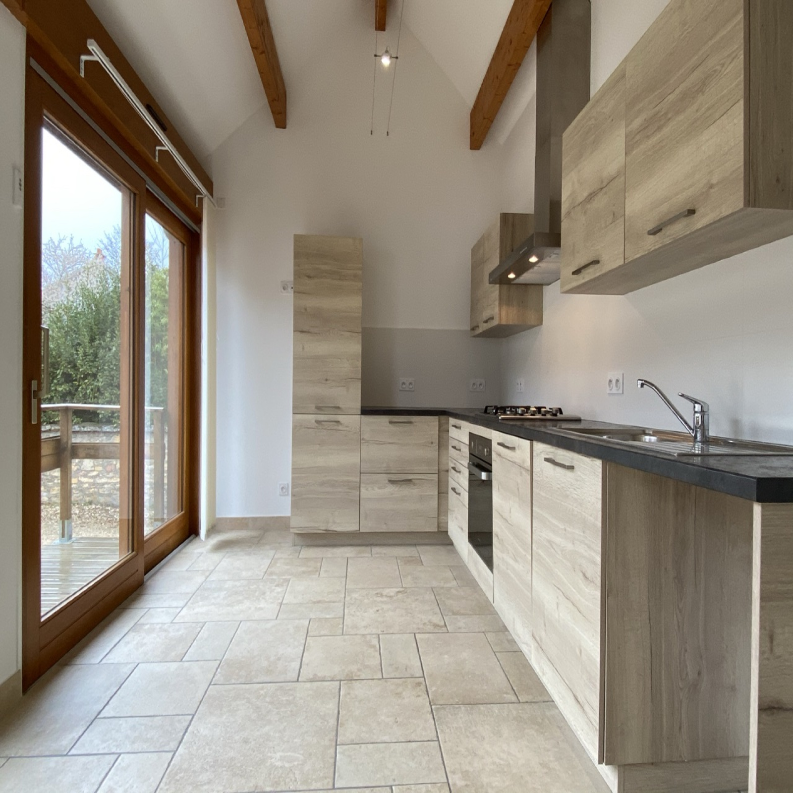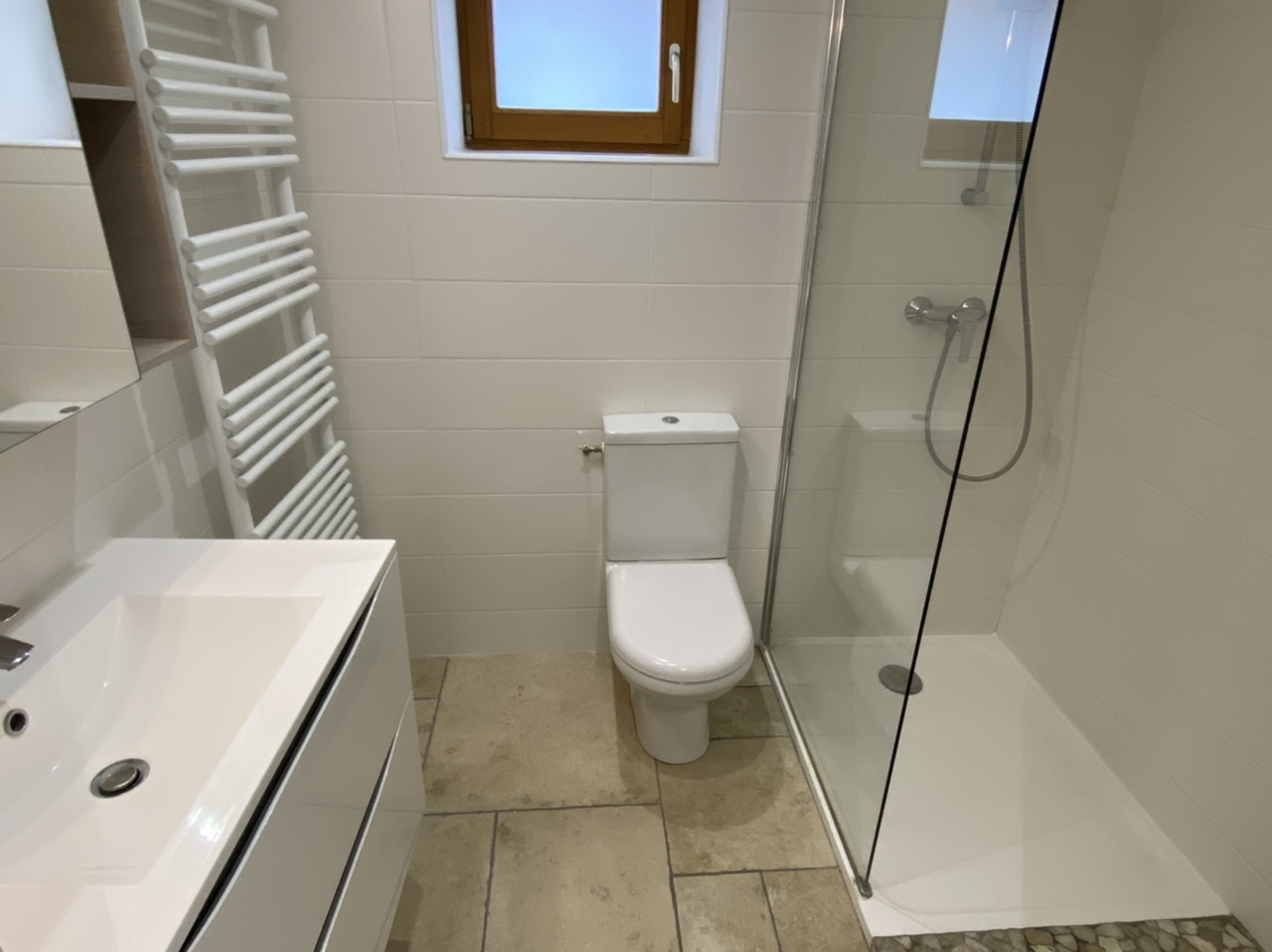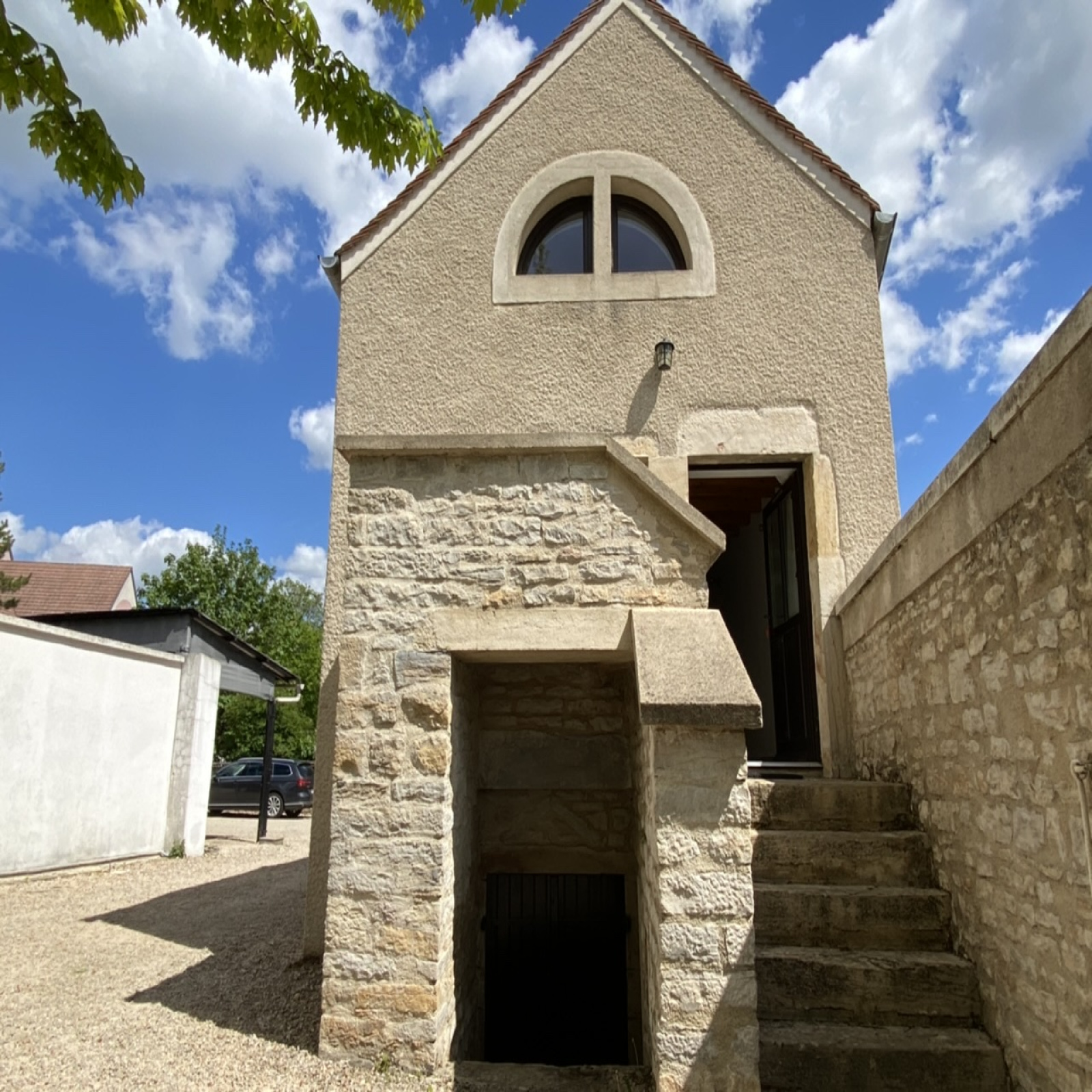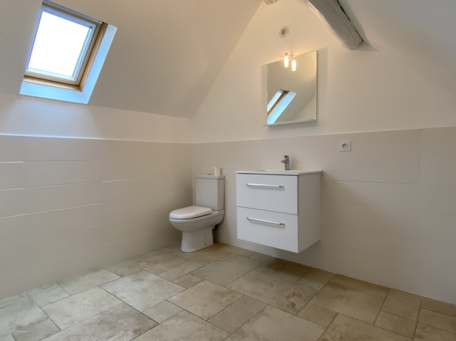 Le second logement est une maison ancienne entièrement rénovée par un architecte, d'une surface d'environ 50 m². Elle dispose au rdc d'une pièce de vie, d'une cuisine équipée, wc et salle d'eau. A l'étage: une chambre, wc et meuble vasque.